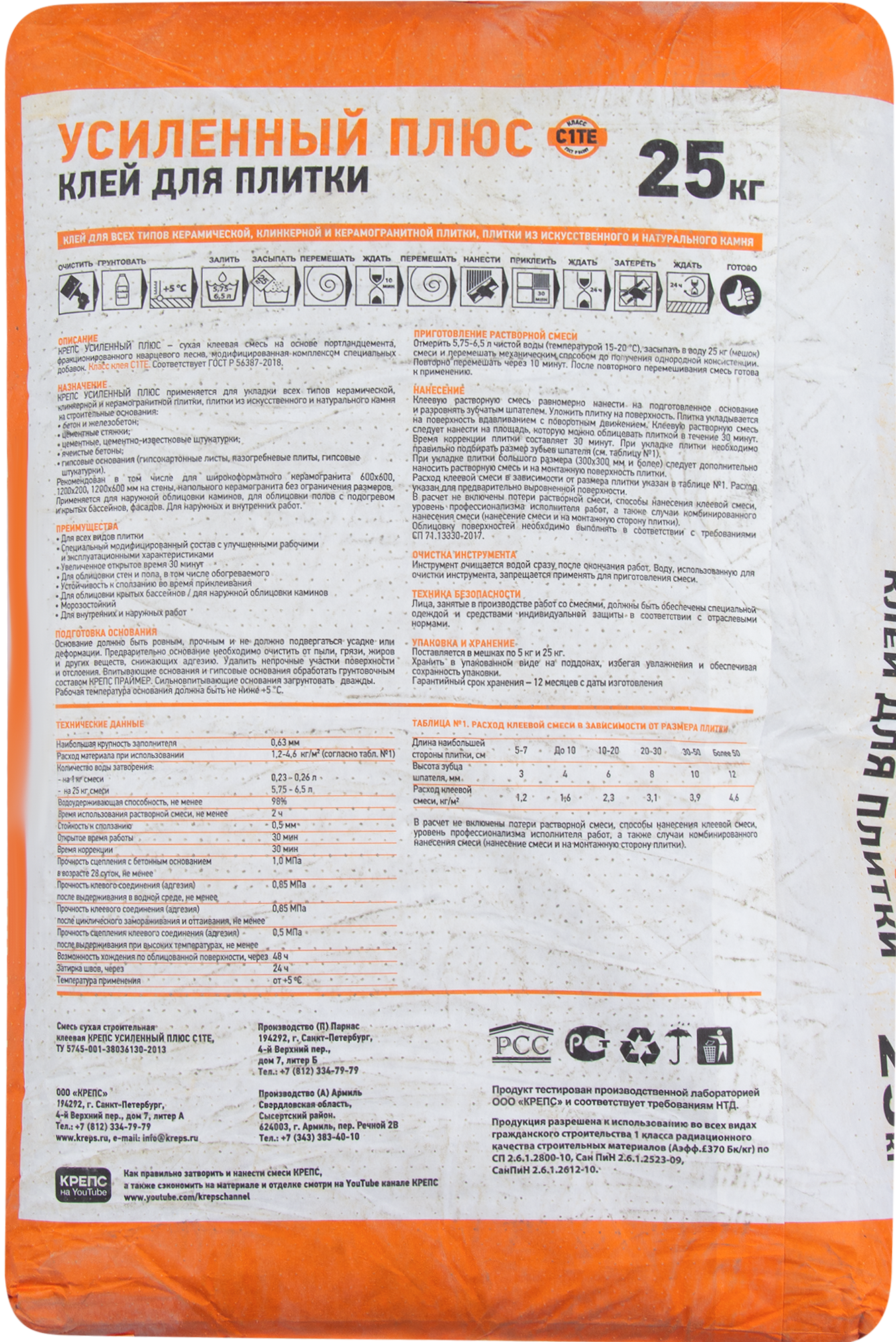 Клей для керамогранита Крепс Усиленный Плюс 25 кг интересное: