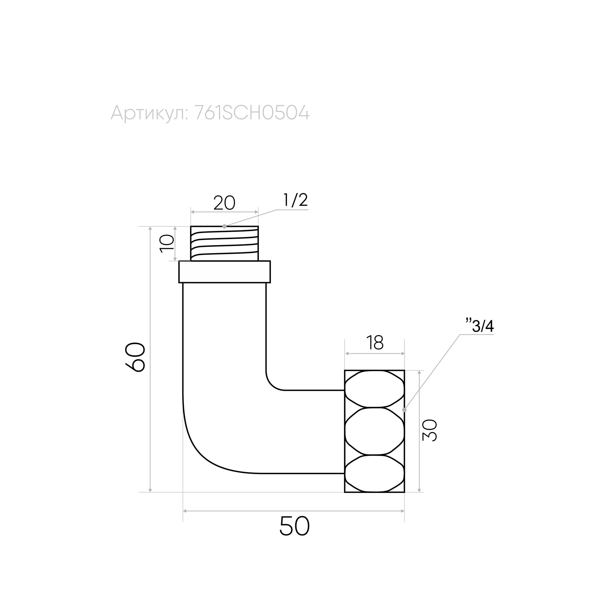 Соединитель для п/суш угл 3/4"x3/4" нак/г/НР, SANTECHSYSTEMS 129-3091 (1 шт.)