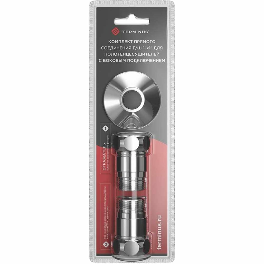 Комплект TERMINUS прямого соединения: соединение прямое г/ш 1"х1" для подключения полотенцесушителей с боковым подключением, хромированные прямые соединения 1" ВРх1" НР для полотенцесушителя, гарантия 1 год интересное: