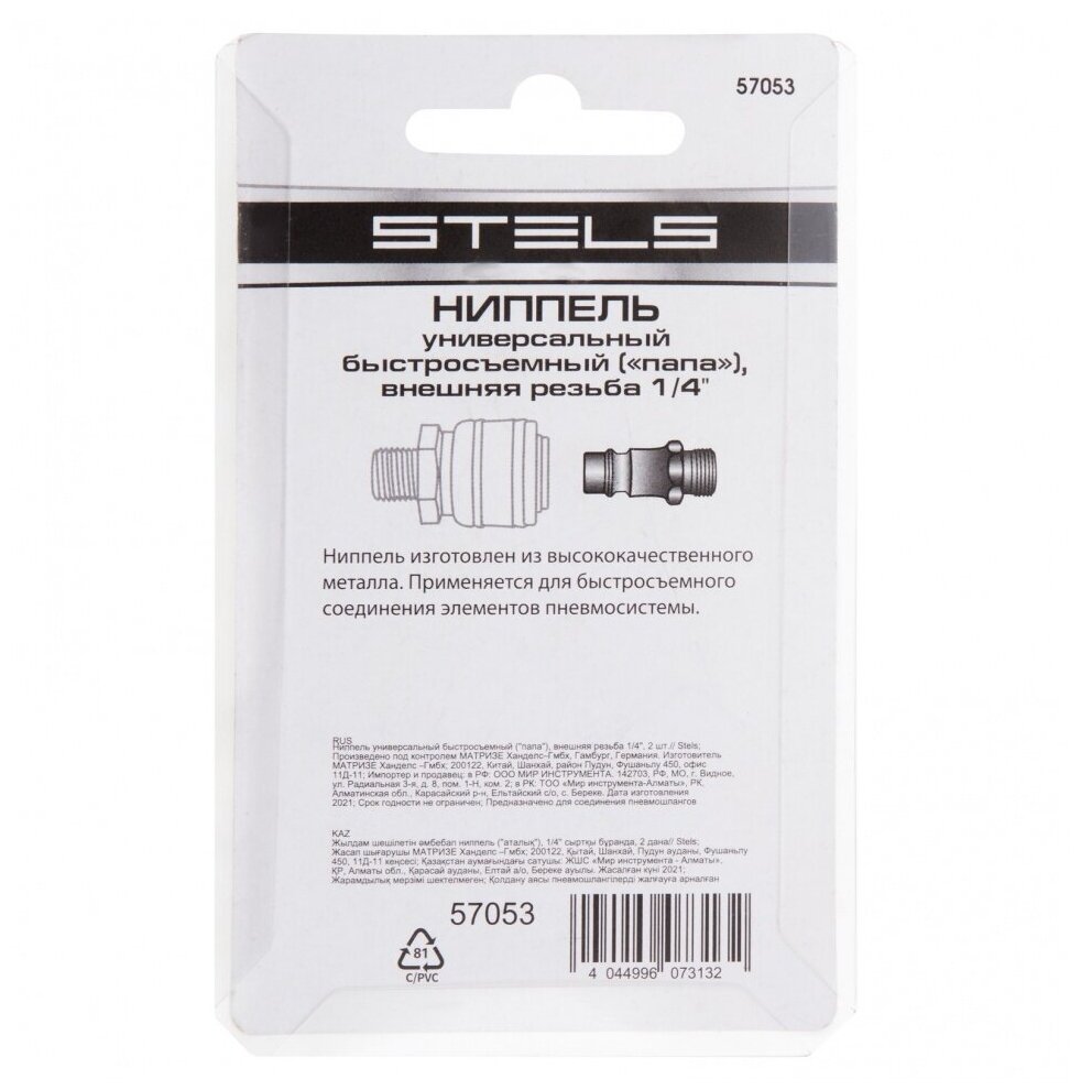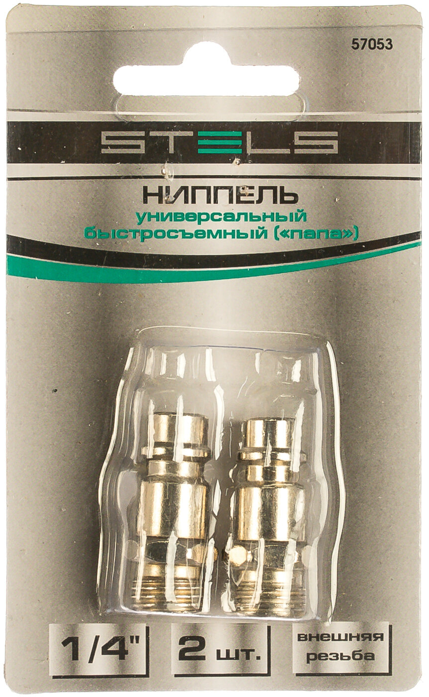 Ниппель универсальный быстросъемный ("папа"), внешняя резьба 1/4", 2 шт. Stels 57053