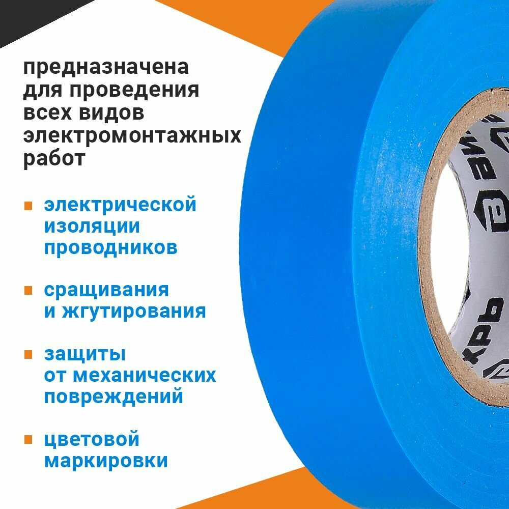 Изолента профессиональная из поливинилхлоридного изоляционного пластика (20m * 19mm) синяя Вихрь