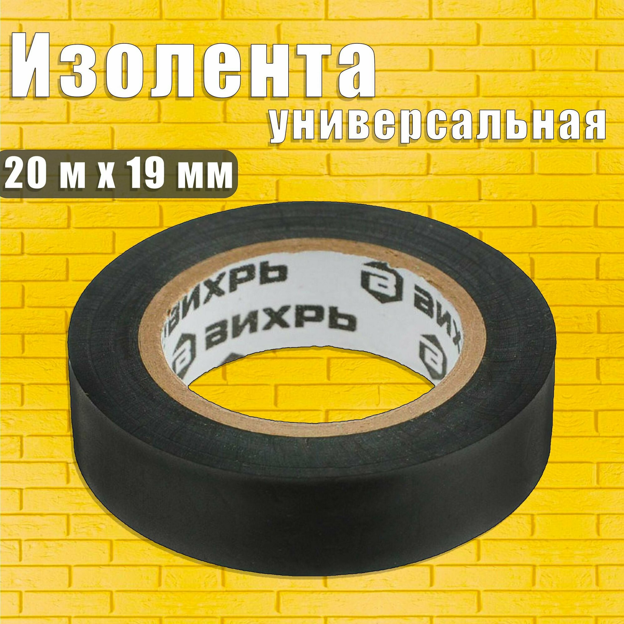 Изолента ПВХ чёрная (20 м x 19 мм) Вихрь