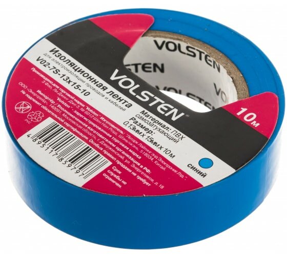 Изолента Volsten V02-7S-13х15-10 0,13х15 мм, синяя, 10 метров 10288 15085556 интересное: