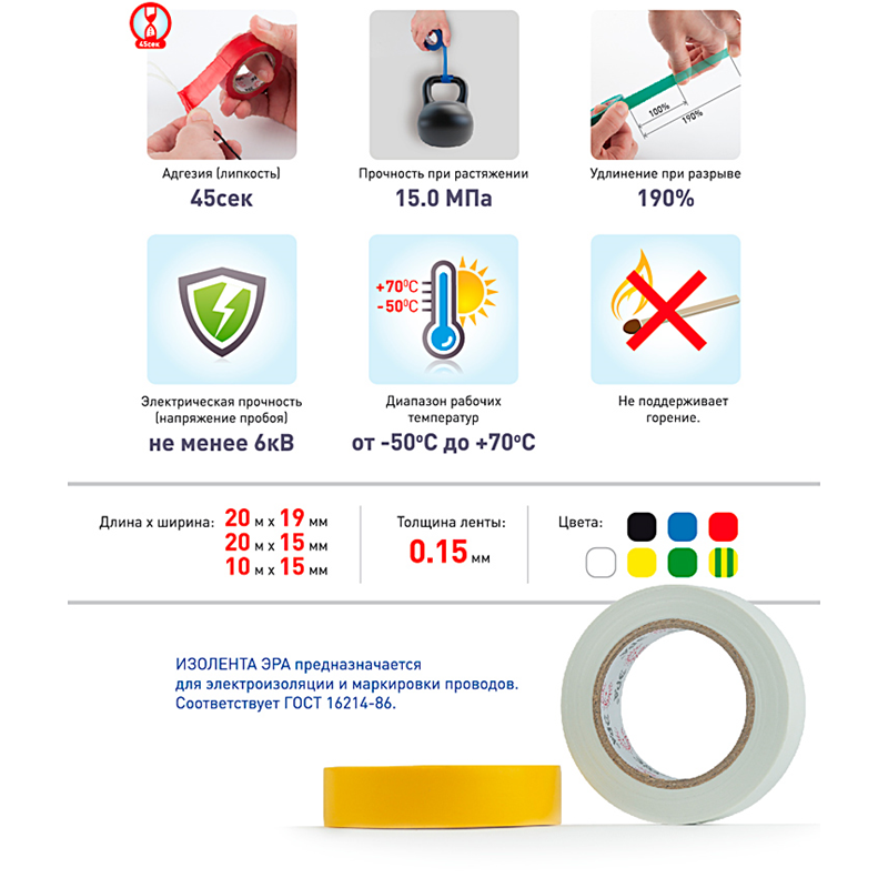 ЭРА C0038781 ПВХ-изолента (син.. чёр.. кр.. зел.. бел.) 15мм*10м (Цена за 1 шт.)