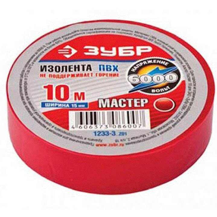 Изолента ПВХ, 15 мм х 10 м, красная Зубр 1233-3_z02