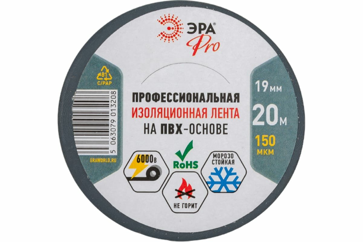 Изолента ПВХ 19ммх20м PRO150BLACK 150мкр проф. черн. ЭРА Б0027917 (20шт.в упак.)