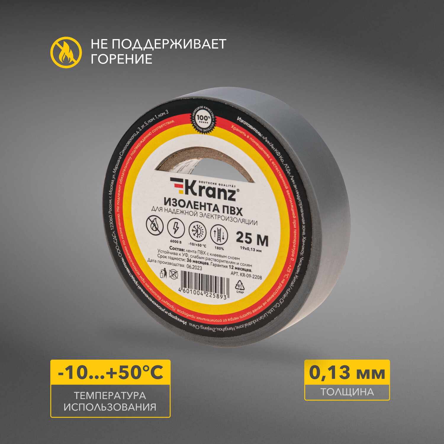 Изолента ПВХ 0.13х19мм 25м сер. Kranz KR-09-2208