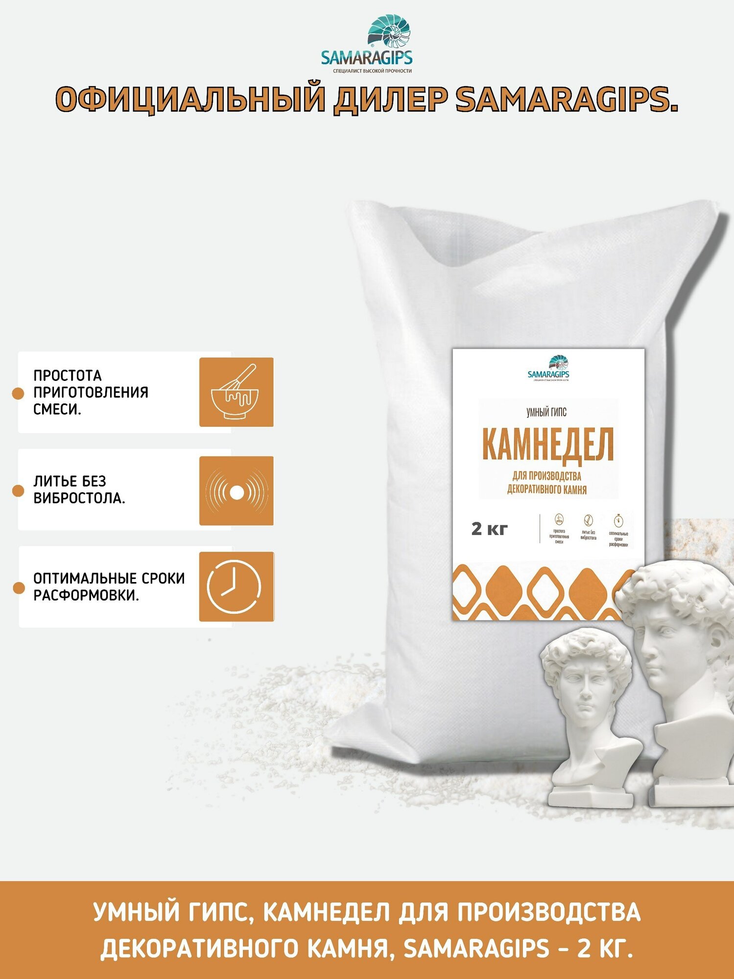 Ниже Вы можете прочитать отзывы на Умный гипс камнедел для литья декоративного камня - 2 кг., ознакомится с подробными характеристиками, посмотреть интересные обзоры и фотографии на Умный гипс камнедел для литья декоративного камня - 2 кг..