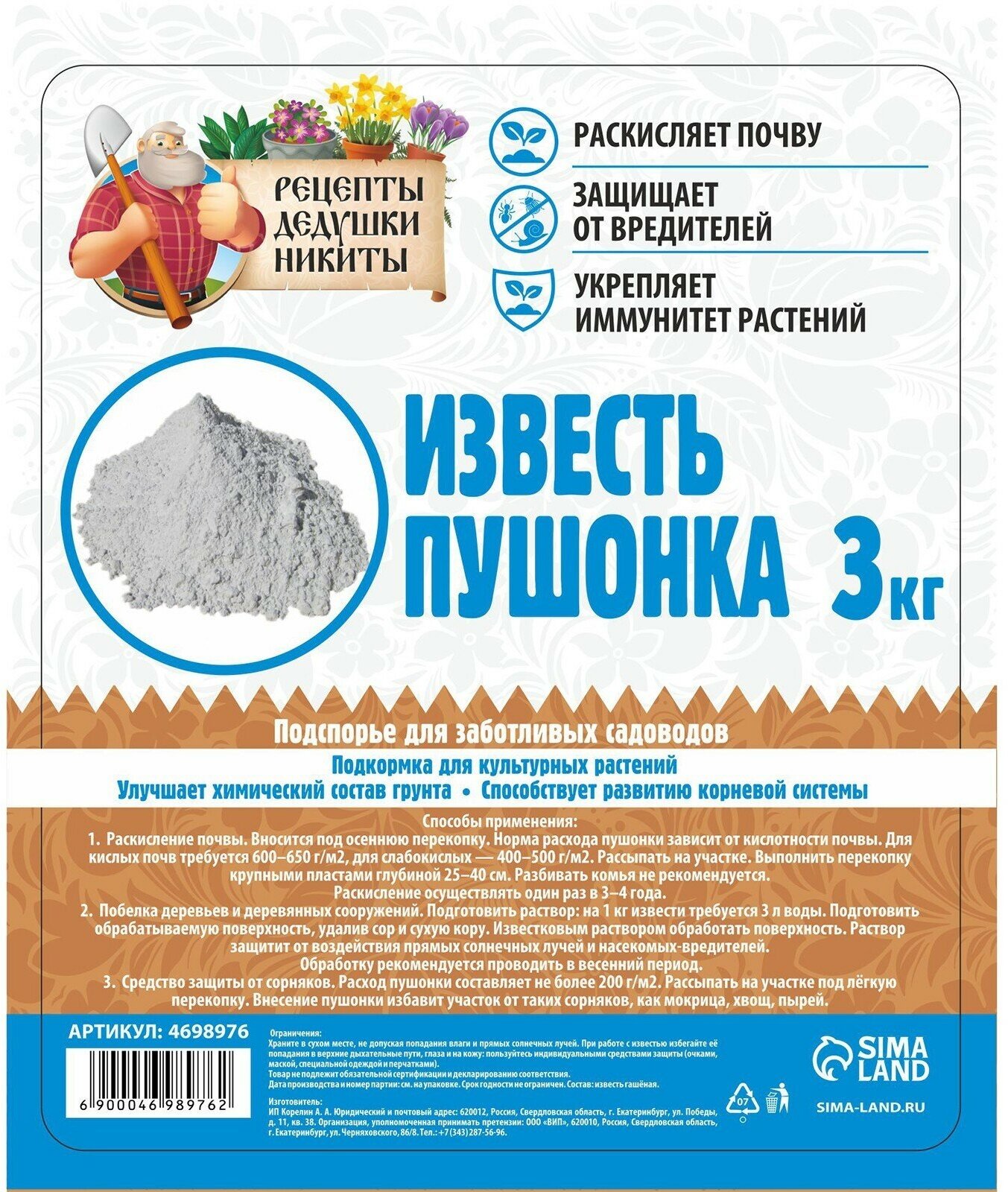 Известь пушонка "Рецепты Дедушки Никиты", 3 кг интересное: