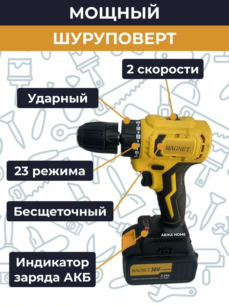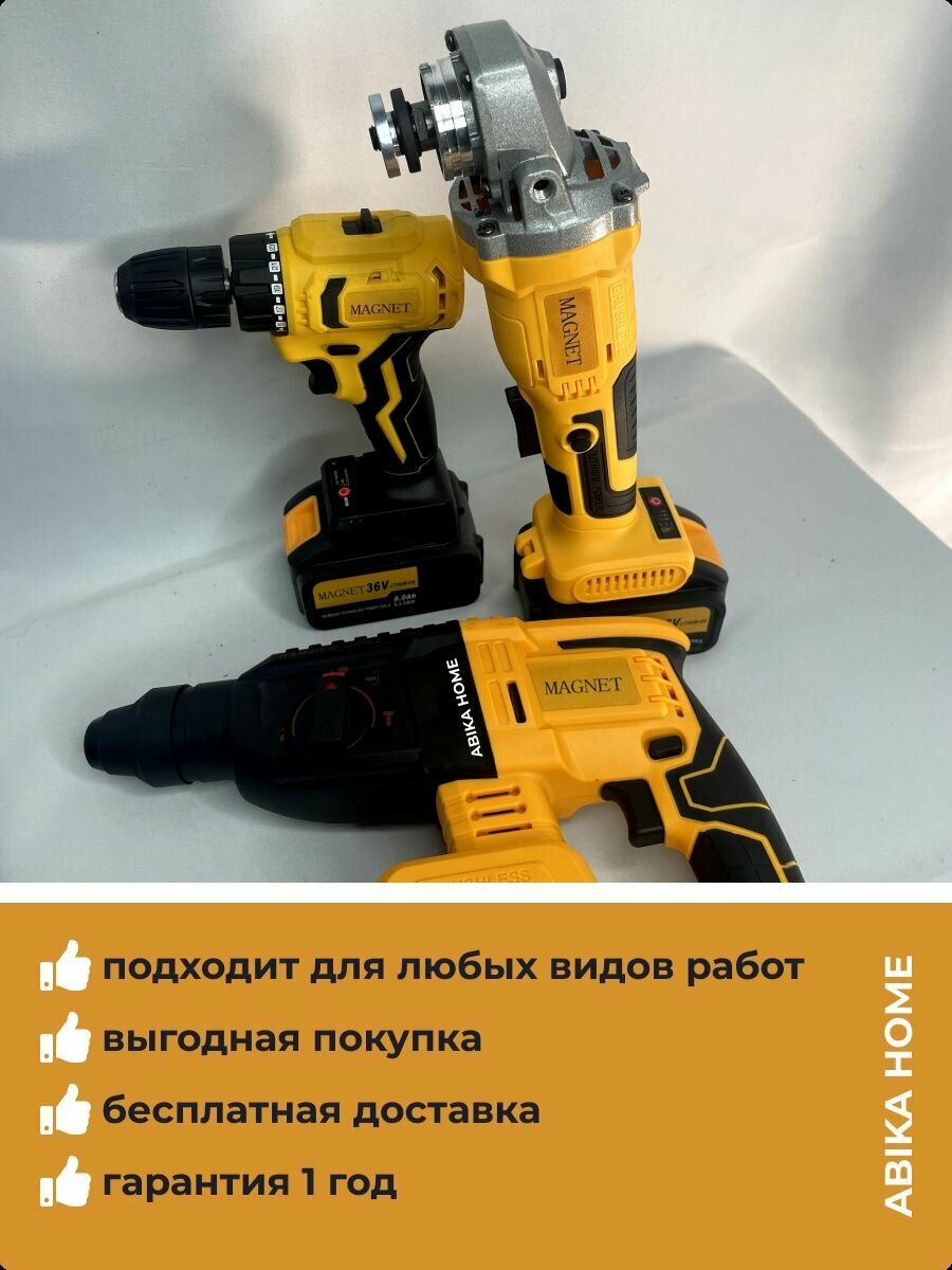 Аккумуляторный набор электроинструмента 3в1, 36 в, шуруповёрт, УШМ, перфоратор MAGNET. Набор электроинструмента АКБ. интересное: