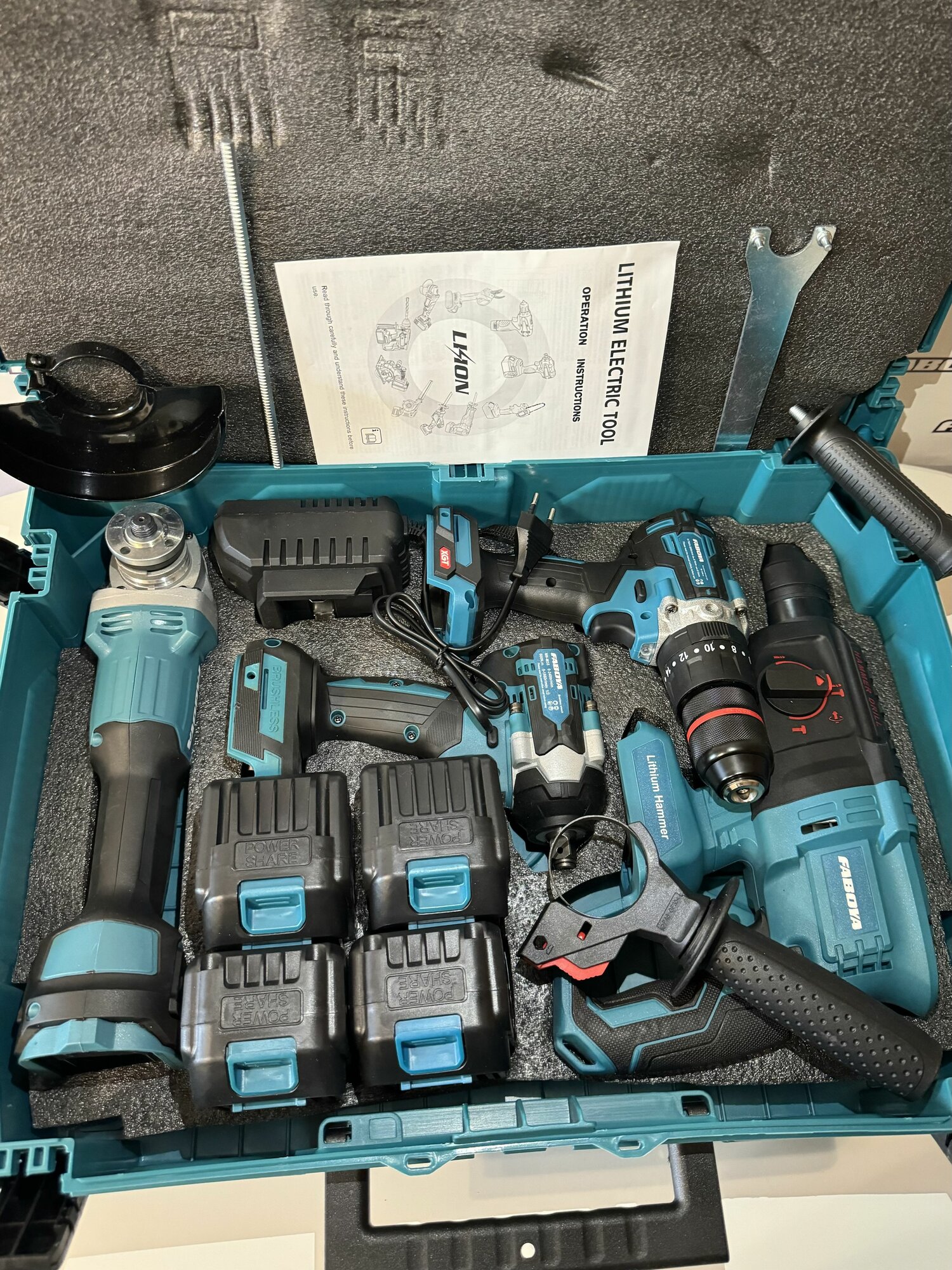 | Состав (подробно) | Шуруповерт / Перфоратор / Гайкаверт / Ушм Болгарка / 4 АКБ / ЗУ . |