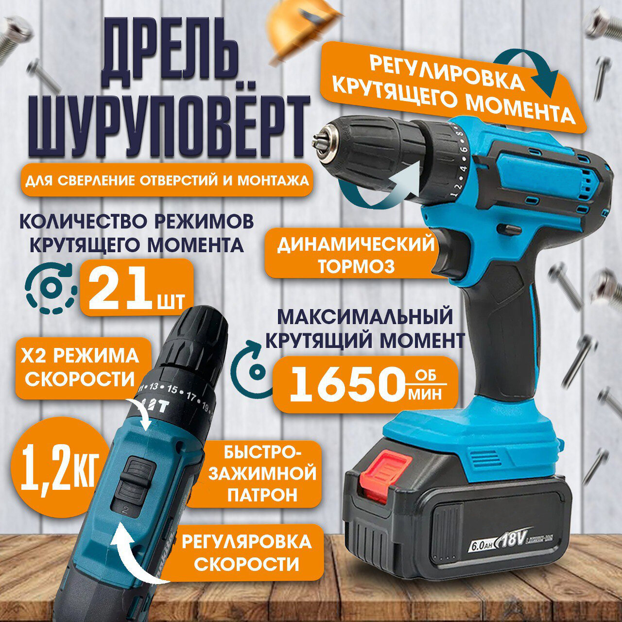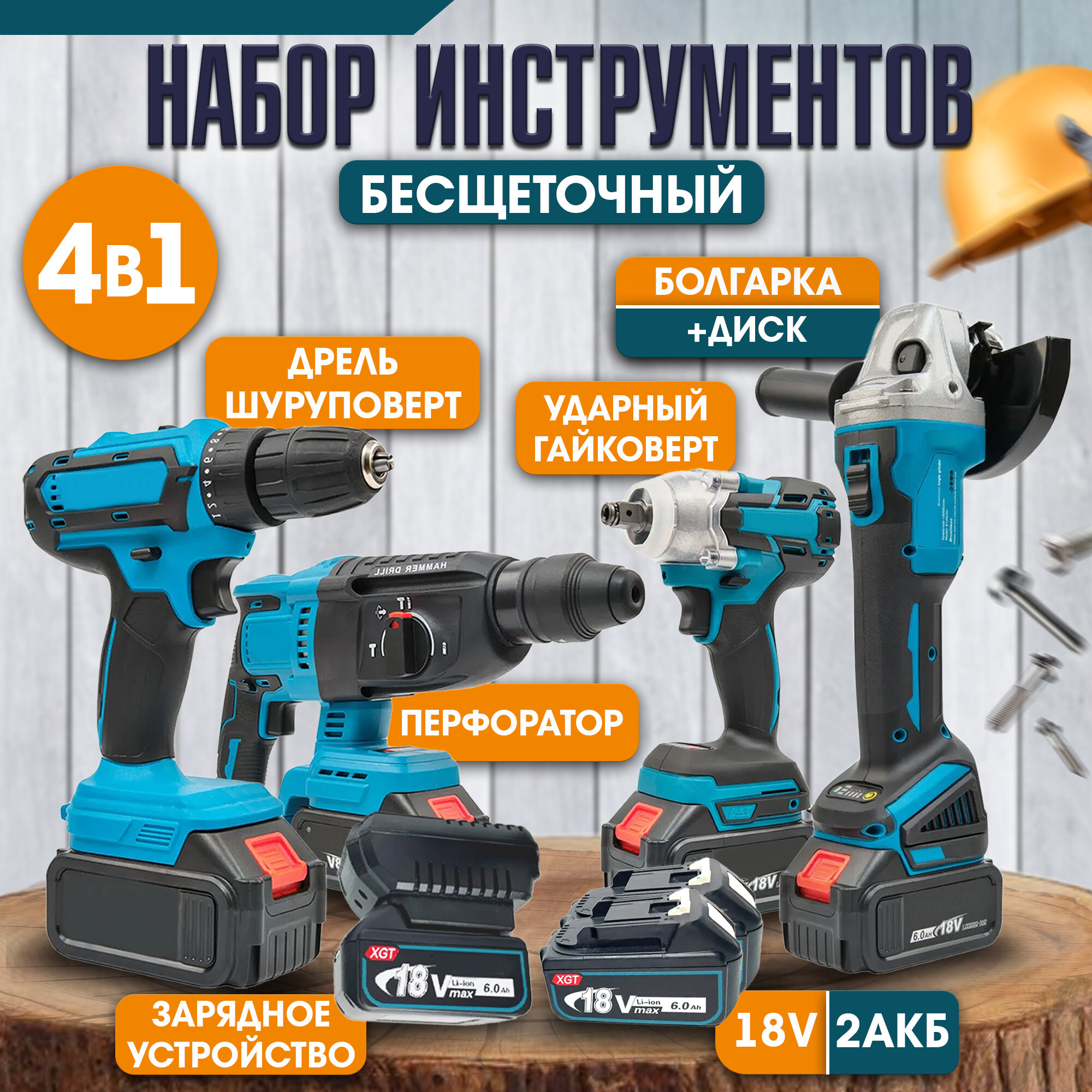 | Инструмент в наборе | гайковерт / дрель-шуруповерт / перфоратор / угловая шлифмашина |