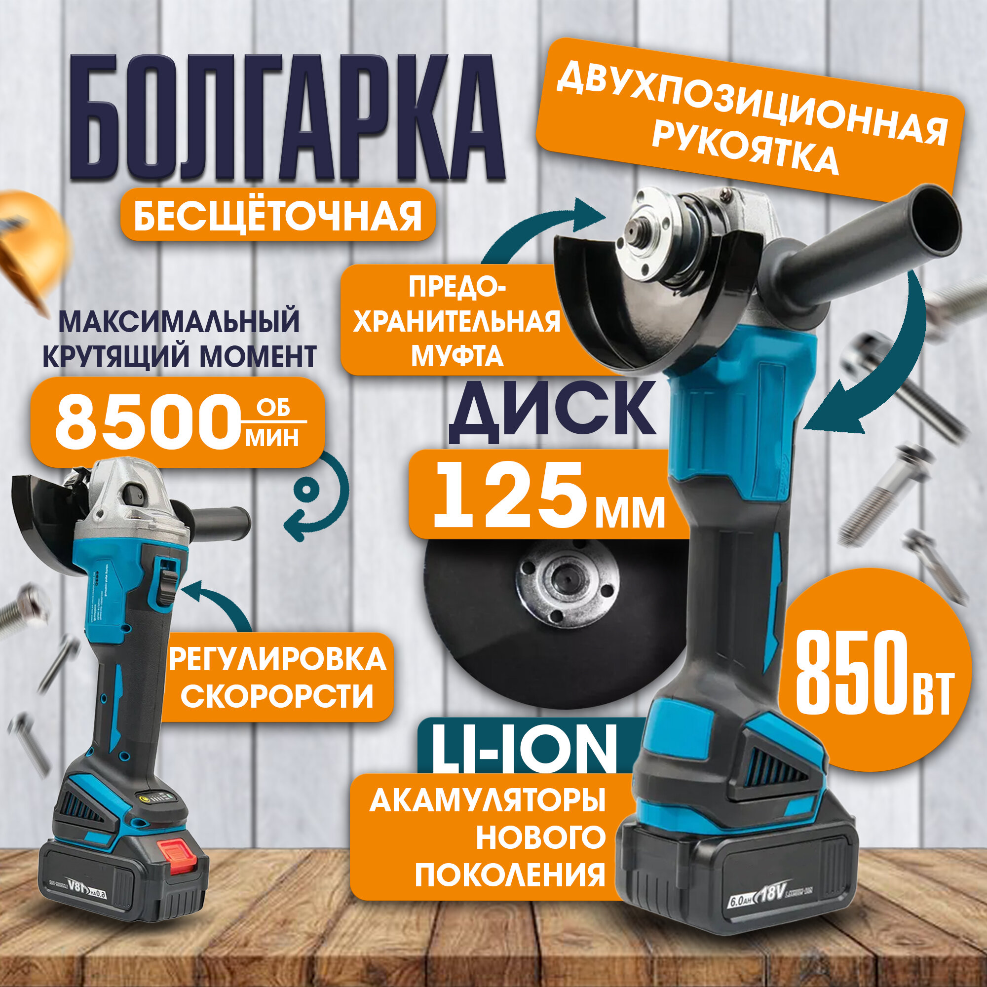 Набор аккумуляторного электроинструмента 2 в 1, гайковёрт 128 v, болгарка УШМ 128 v