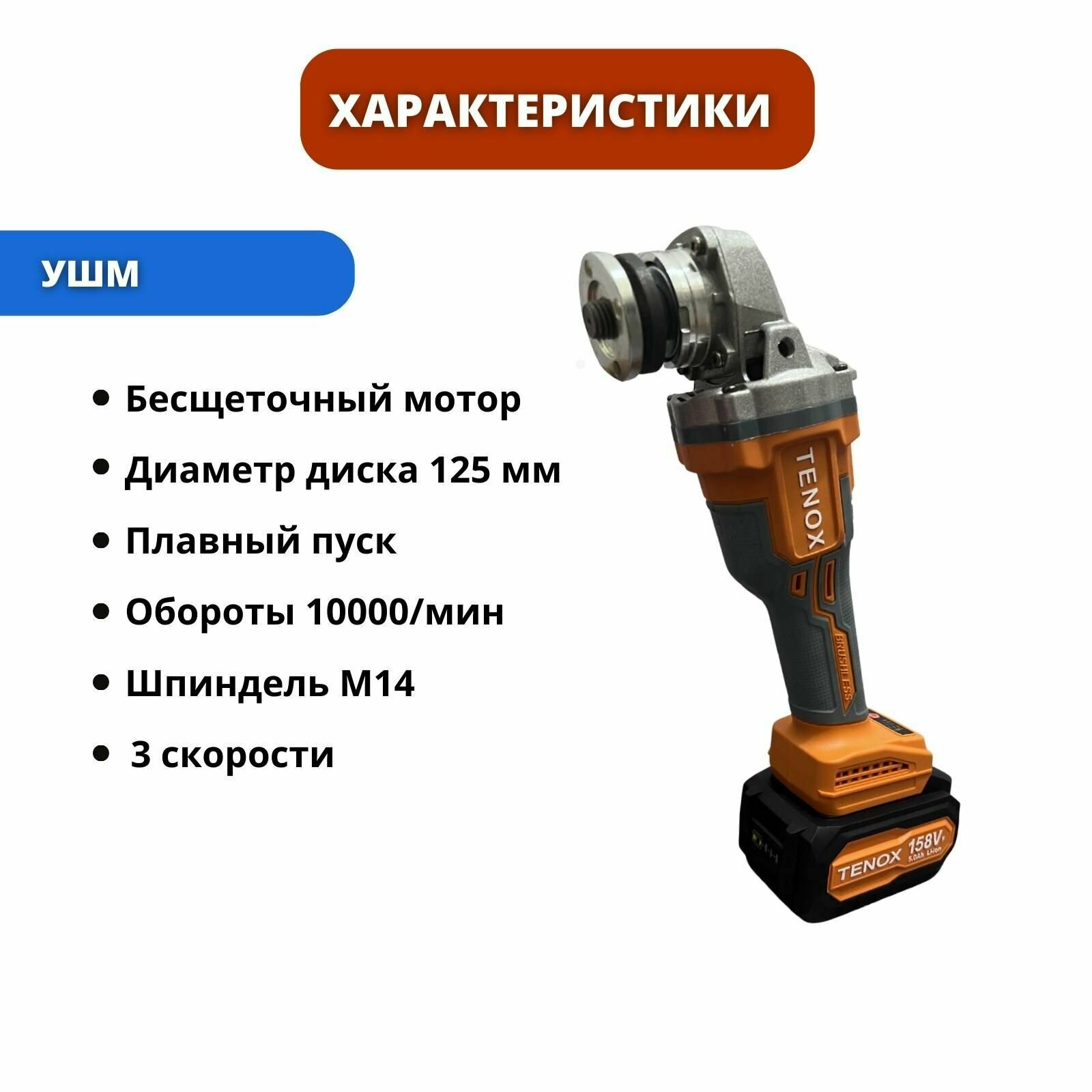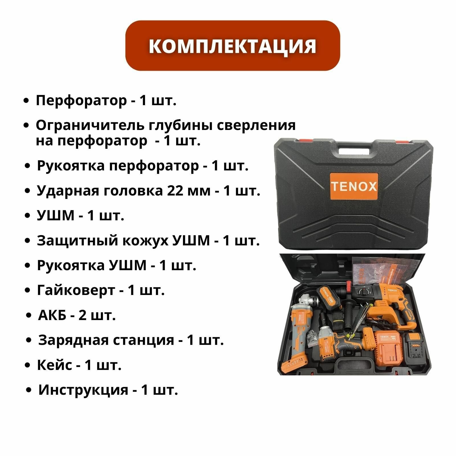 TENOX 3 в 1 кейсе, Набор бесщеточных аккумуляторных инструментов перфоратор, болгарка УШМ, гайковерт, 2 АКБ LI-ION, 5 Ач интересное: