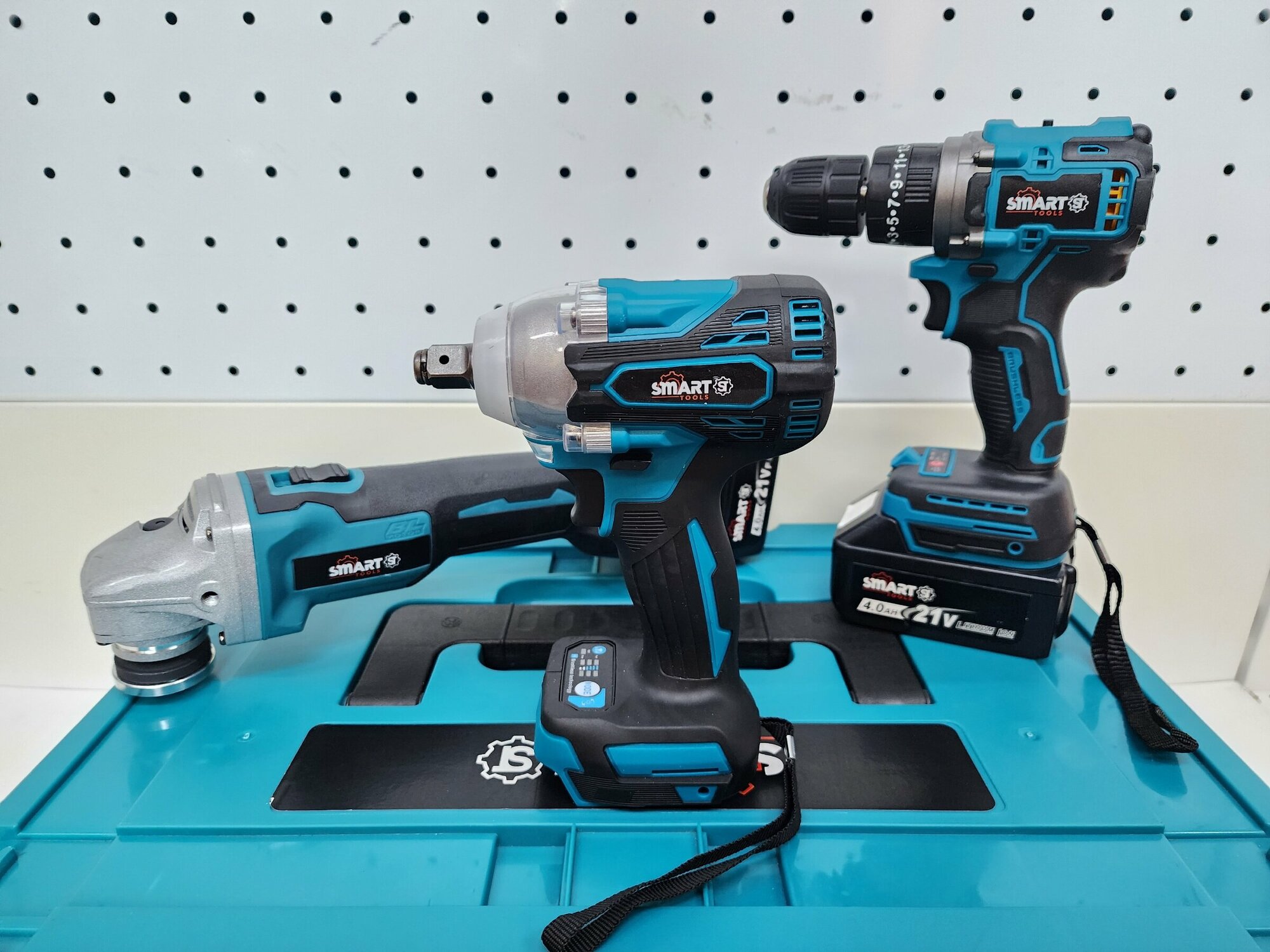 Купить Набор аккумуляторного инструмента Smart 3 в 1 (гайковерт+ушм+дрель-шуруповерт), 21 В, 4Ач, 2 акб, кейс