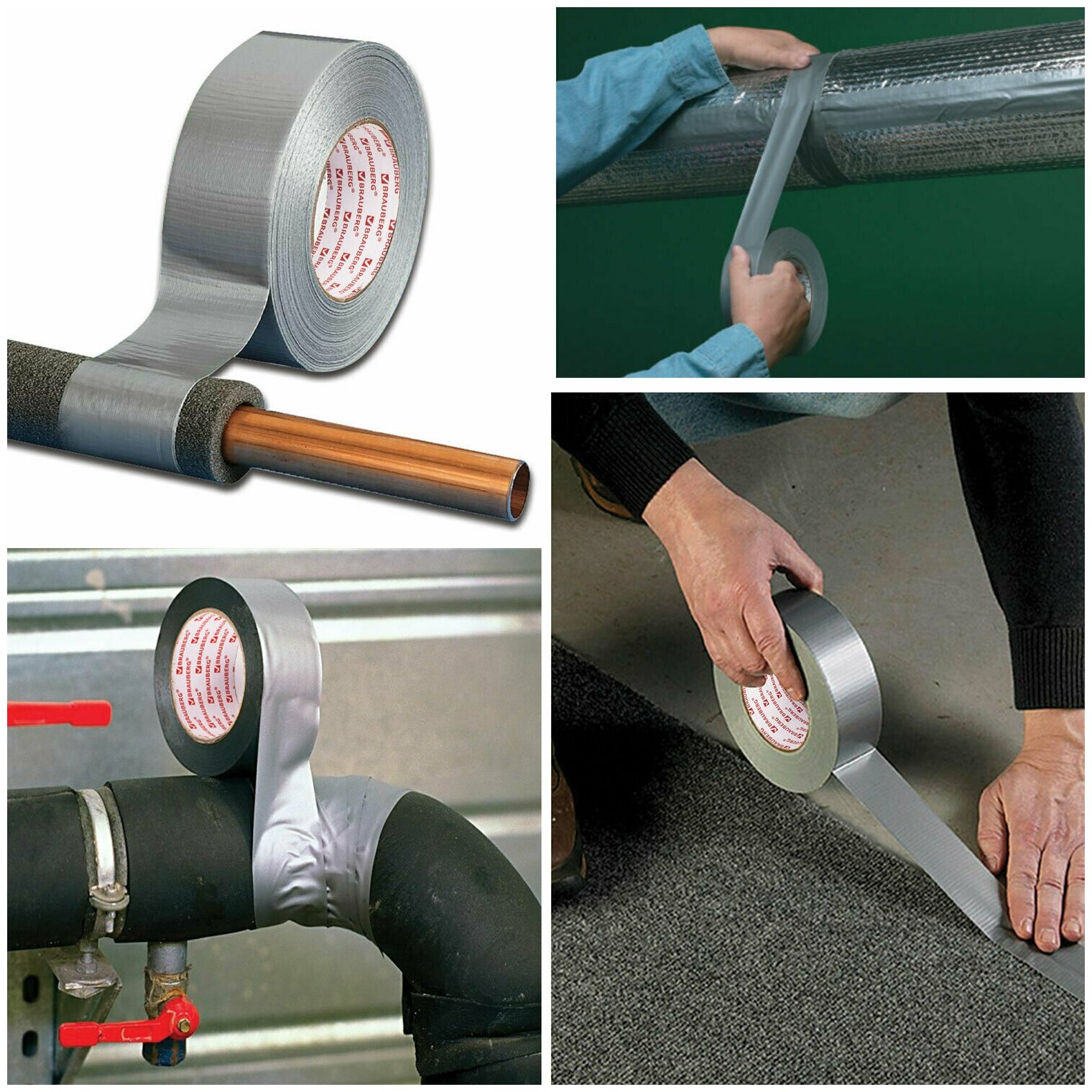 Лента алюминевая клейкая металлизированная монтажная строительная Армированная лента 48 мм х 25 м, Тканевая Основа, Brauberg, 606770