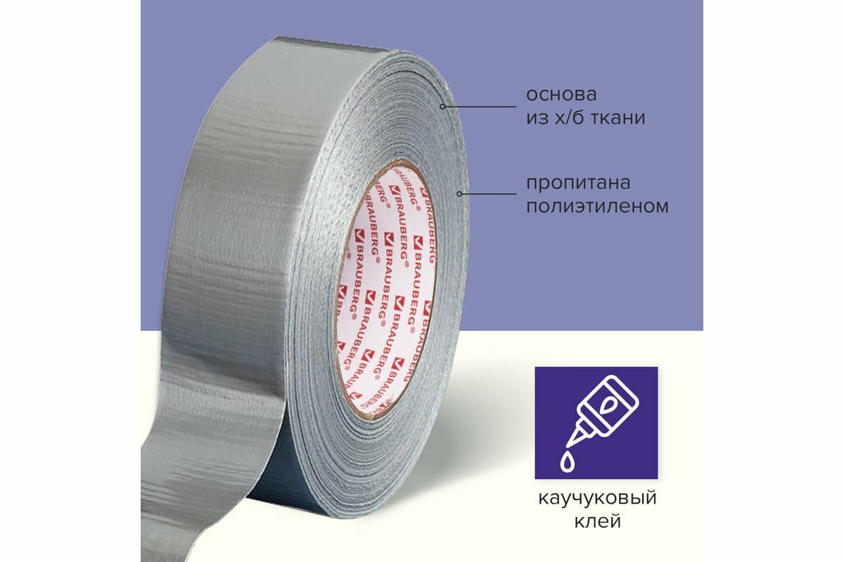 Клейкая лента (скотч) армированная Brauberg (48мм х 25м, тканевая основа) (606770), 1шт.