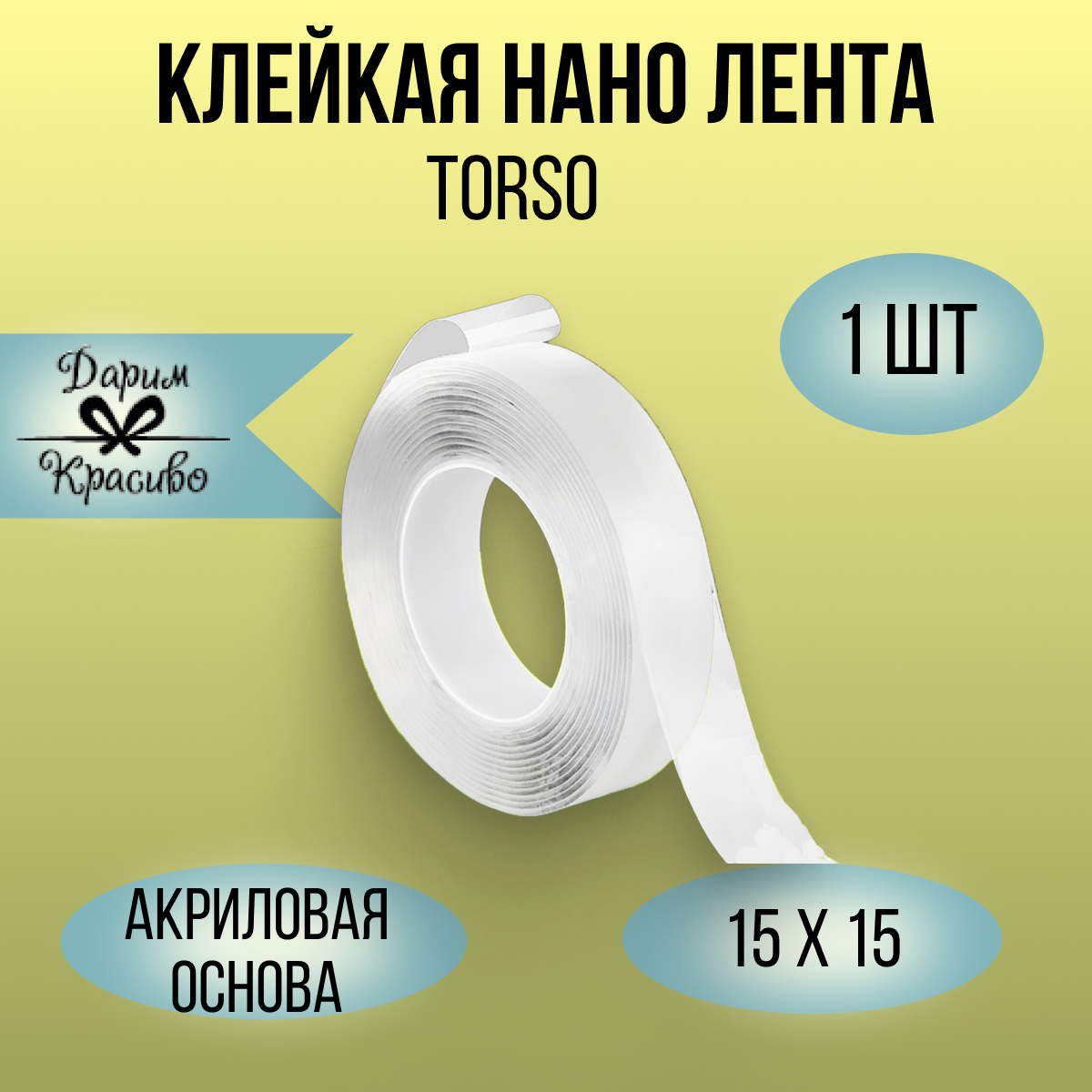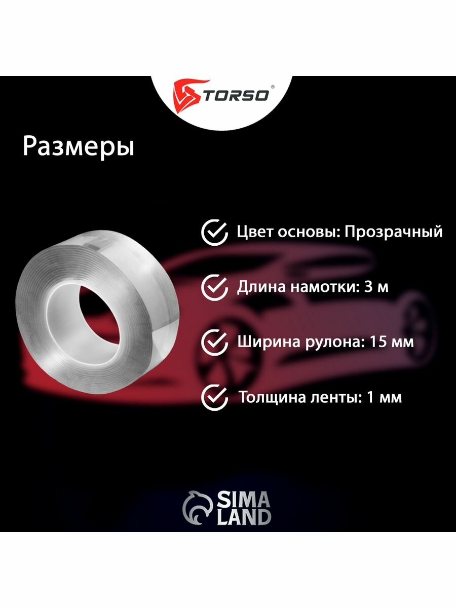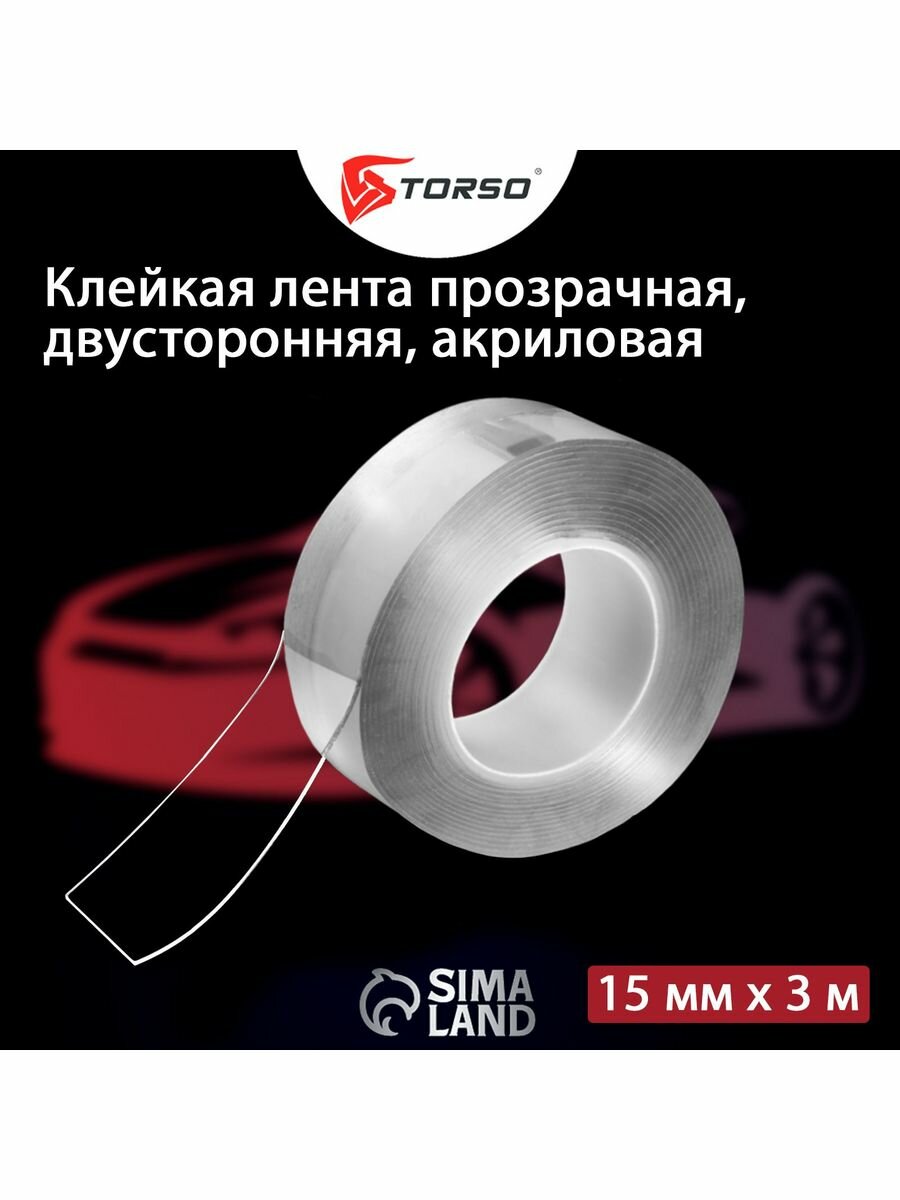 Купить Клейкая нано лента TORSO, прозрачная, двусторонняя, акриловая 15 мм х 3 м