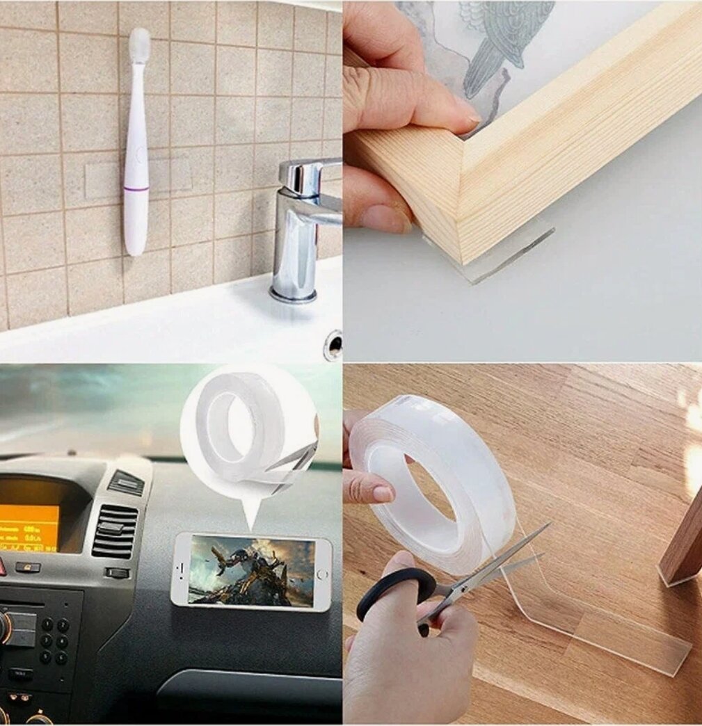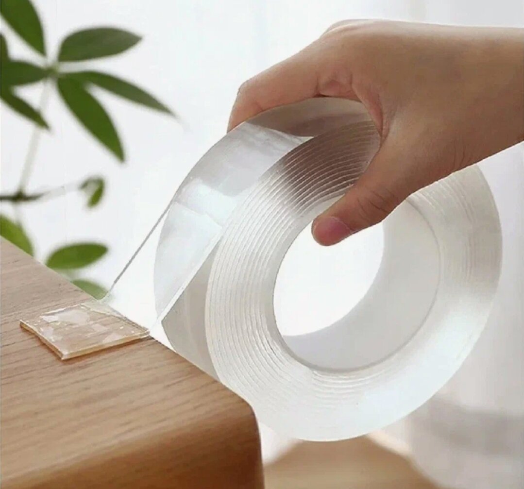 Клейкая нано лента прозрачная, двусторонняя, акриловая 18 мм x 3 м