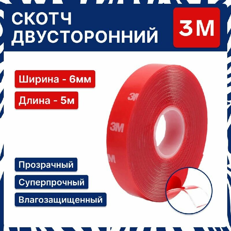 Двусторонний скотч акриловый, клейкая лента 3М прозрачная, многоразовая 6мм*5м, отличная фиксация интересное: