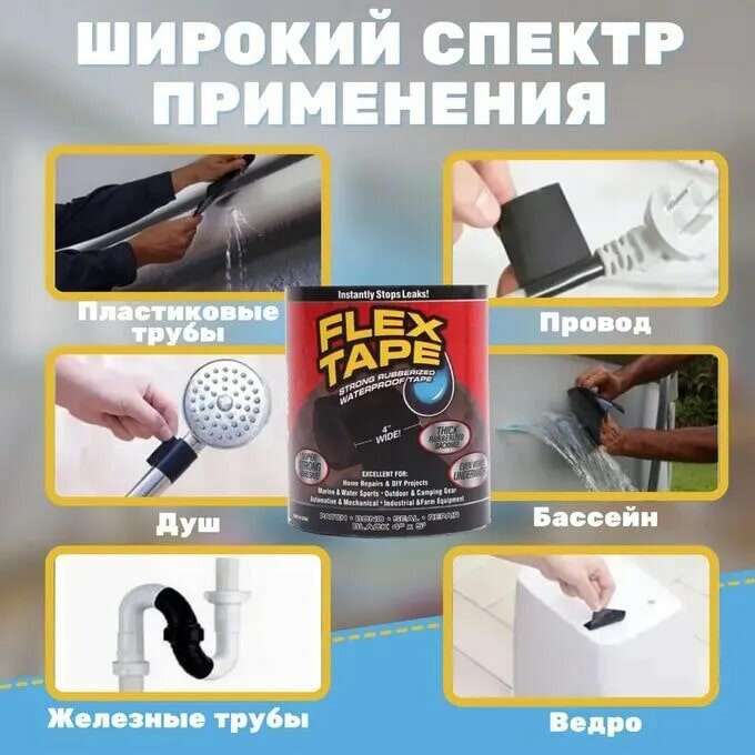 Ниже Вы можете прочитать отзывы на Сверхсильная водостойкая клейкая лента Flex Tape Супер фикс 10х150 см, 2 штуки, черная+белая, ознакомится с подробными характеристиками, посмотреть интересные обзоры и фотографии на Сверхсильная водостойкая клейкая лента Flex Tape Супер фикс 10х150 см, 2 штуки, черная+белая.