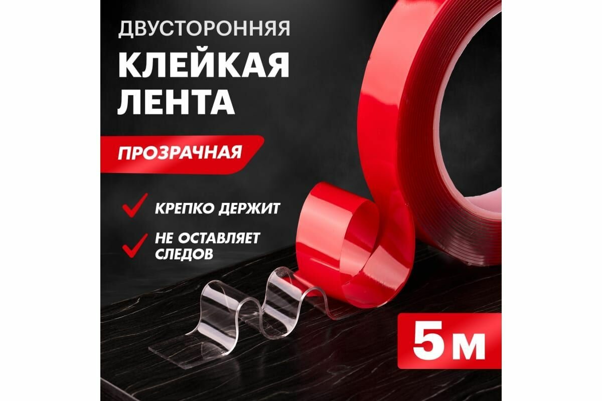 Двухсторонняя клейкая лента REXANT прозрачная, на акриловой основе, 20 мм, ролик 5 м 2 шт
