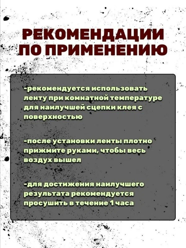 | Дополнительная информация | Сверхсильная клейкая лента подойдёт для любых поверхностей. Ширина - 10 см. Длина - 150 см. Сверхсильную клейкую ленту можно наклеить на абсолютно любую поверхность, любой текстуры и формы. При помощи сверхсильной клейкой ленты можно отремонтировать предметы даже под водой! не страшны морозы до 45 и высокие температуры до +85C. Им можно пользоваться в любую погоду! |