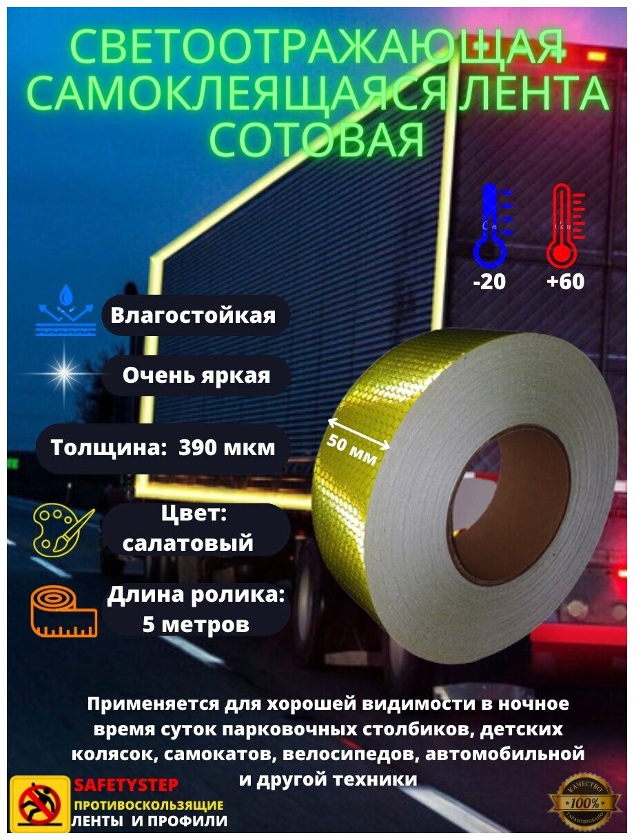 Купить Светоотражающая самоклеящаяся лента сотовая Reflective Tape Honeycomb, SAFETYSTEP, 50 мм х 5 метров, салатовая