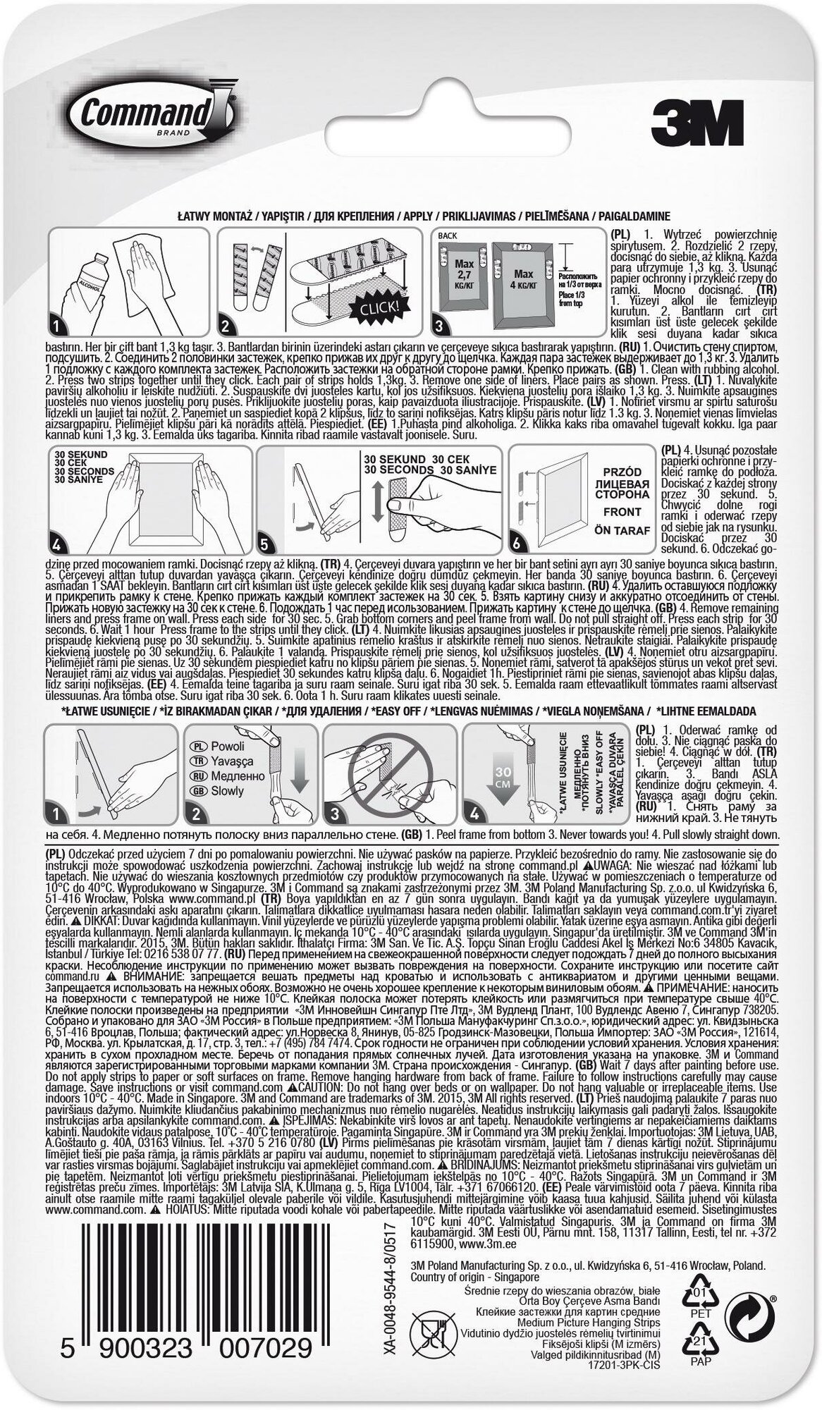Застежки для картин Command самоклеящиеся (17201ЗРК) 3 пары/уп, 5 уп