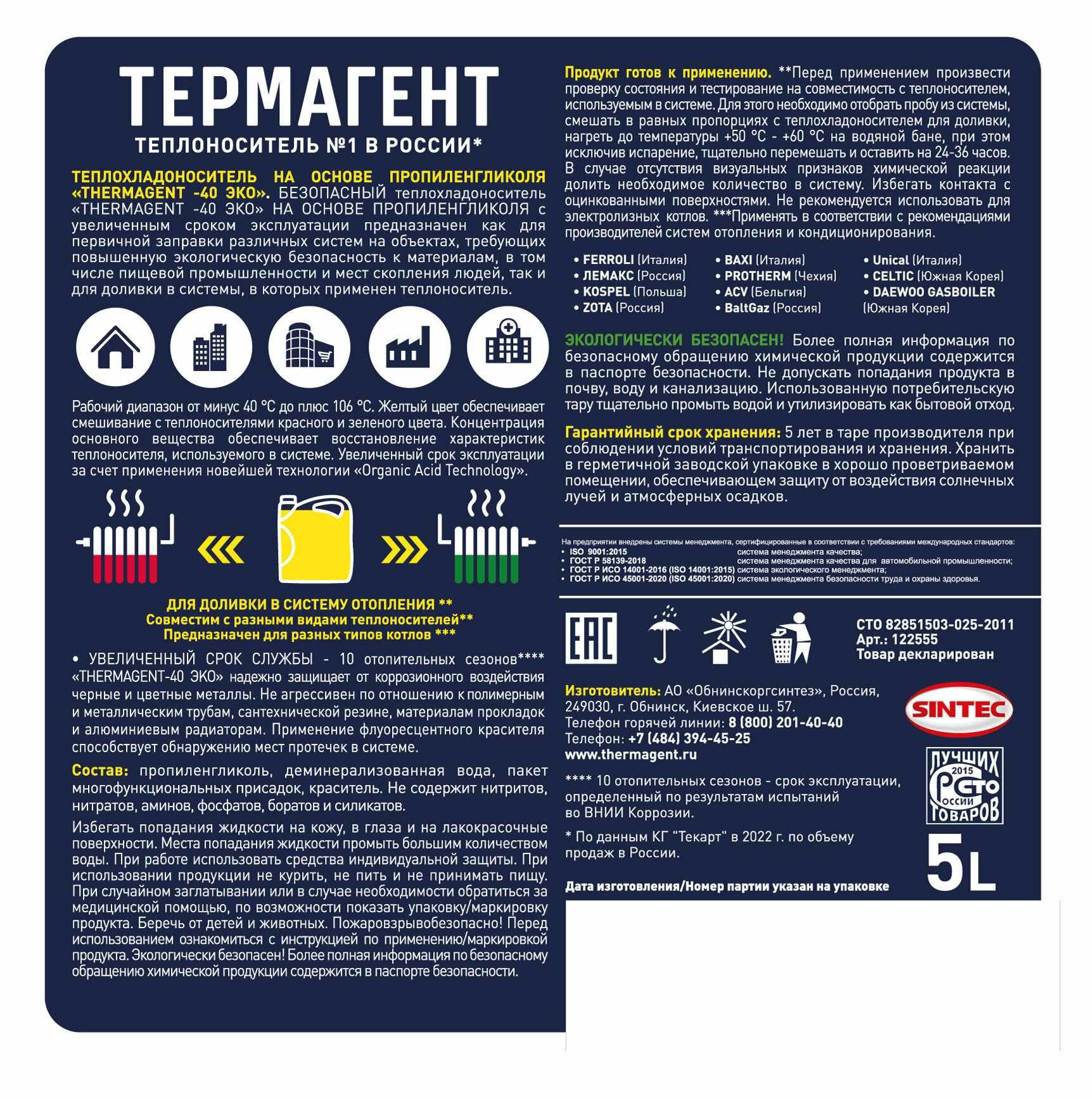 Теплоноситель Thermagent Eko -40, 5 Л интересное: