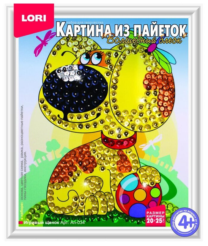 Картина из пайеток Игривый щенок Ап-034 интересное: