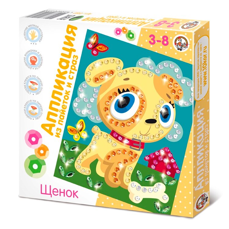 Набор для творчества. Аппликация из пайеток и страз. Щенок