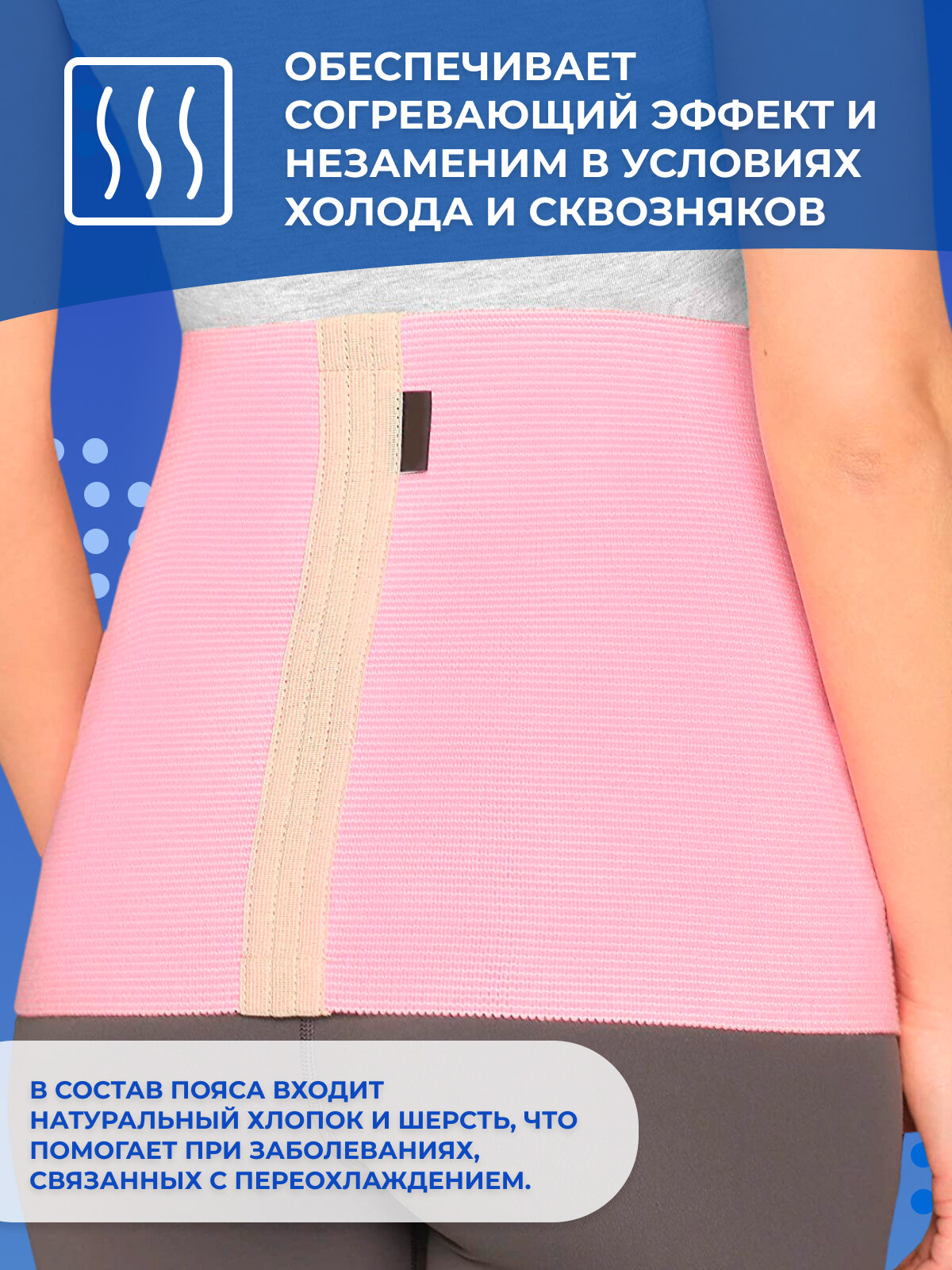 Купить Пояс для спины согревающий эластичный противорадикулитный - Бандаж послеоперационный послеродовой поддерживающий, овечья шерсть. Розовый, 1 размер.