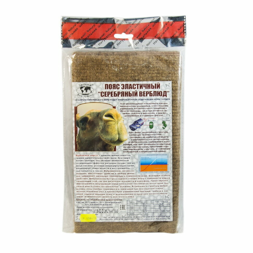 Пояс эластичный серебро из верблюжьей шерсти р.2 (68-75/96-101)