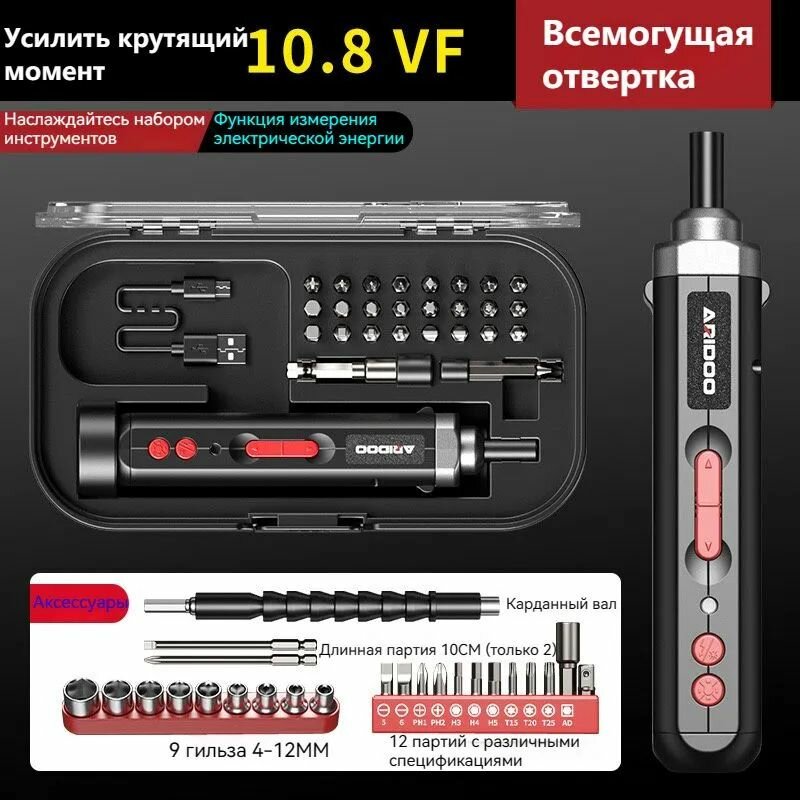 Аккумуляторная электрическая отвертка ARIDOO / с набором бит, в кейсе / большой крутящий момент интересное: