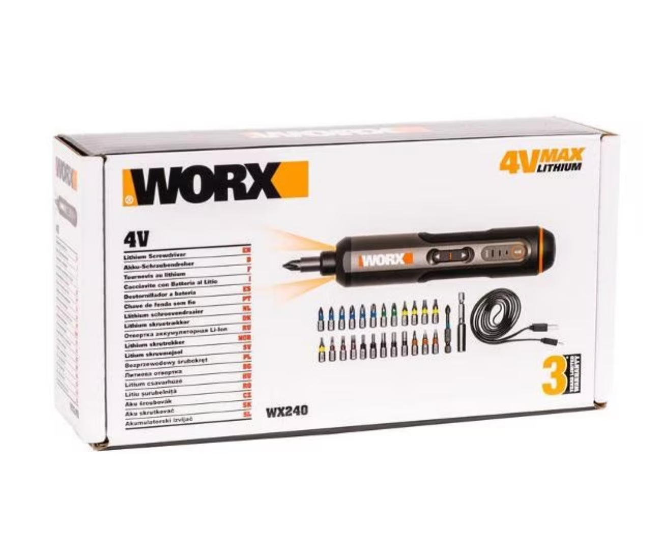 Купить Аккумуляторная отвертка WORX 4В, 5Нм, 1,5Ач, набор оснастки WX240