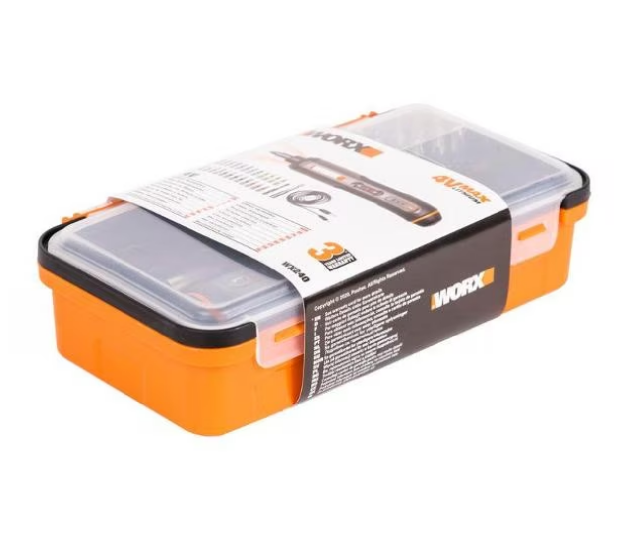 | Комплектация | аккумуляторная отвертка WX240, набор бит – 26 шт, USB – переходник для зарядки, пластиковый пенал для хранения |