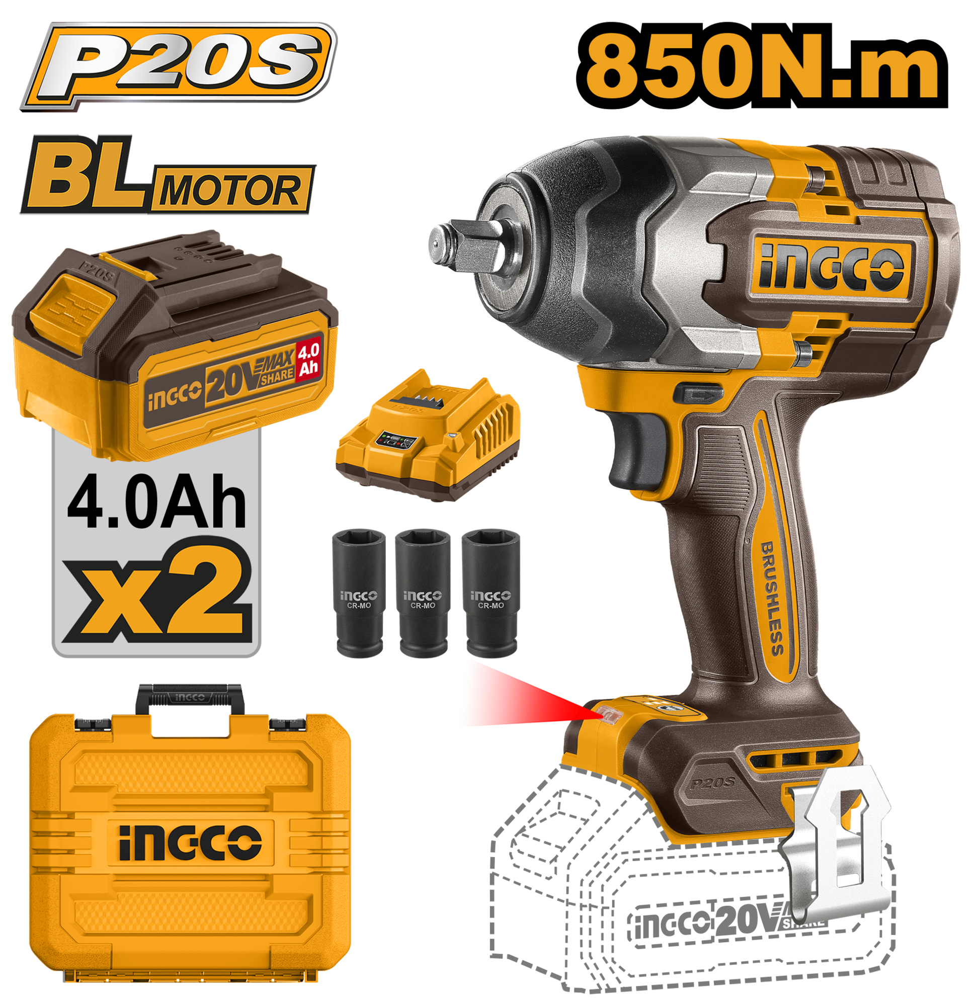 Аккумуляторный бесщеточный ударный гайковерт INGCO CIWLI2085 INDUSTRIAL 20 В 1/2" 850 Нм интересное: