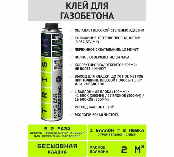 Клей-пена строительный для кладки газобетона и блоков Termolit TRIS 1000 мл. интересное: