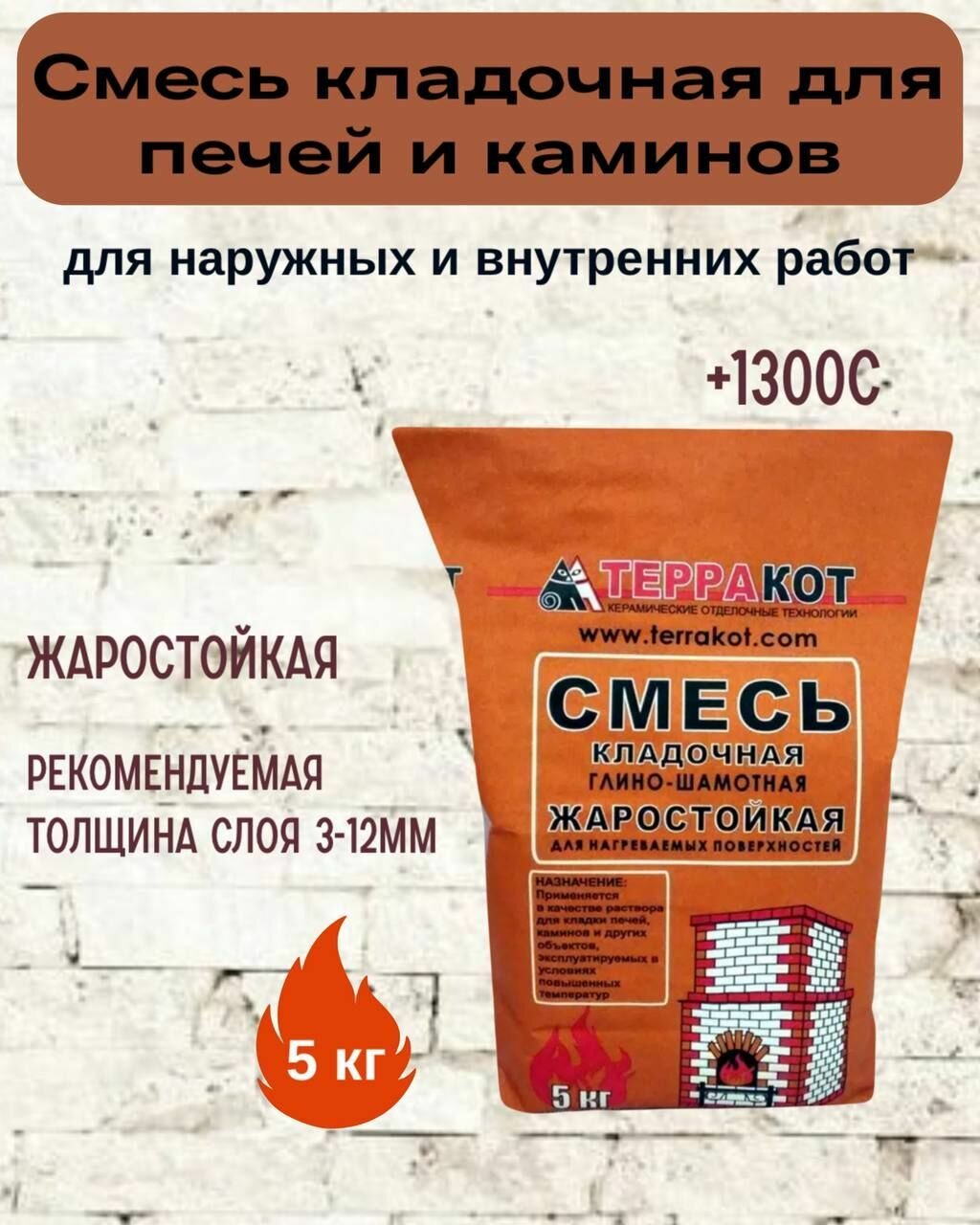Терракот Смесь кладочная глино-шамотная жаростойкая для печей и каминов 5кг интересное:
