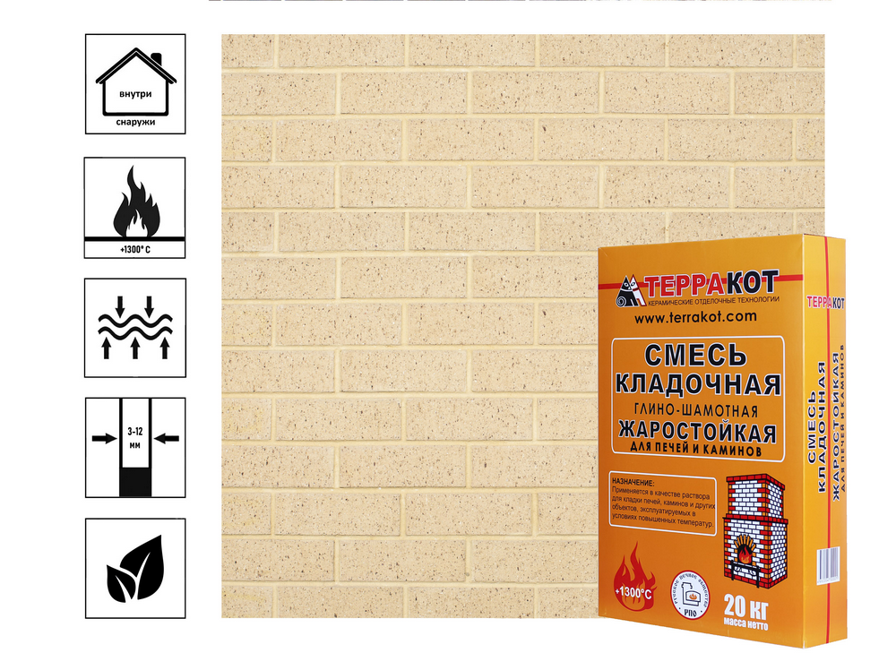 Смесь Терракот Мертель кладочная огнеупорная 20 кг