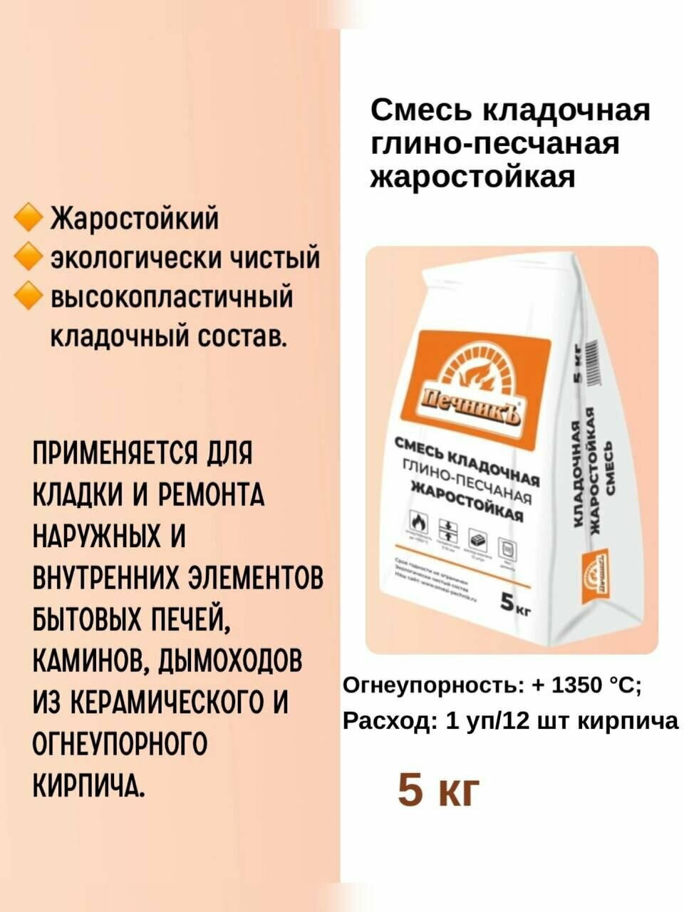 Смесь кладочная Печник глино-песчаная жаростойкая 5кг интересное: