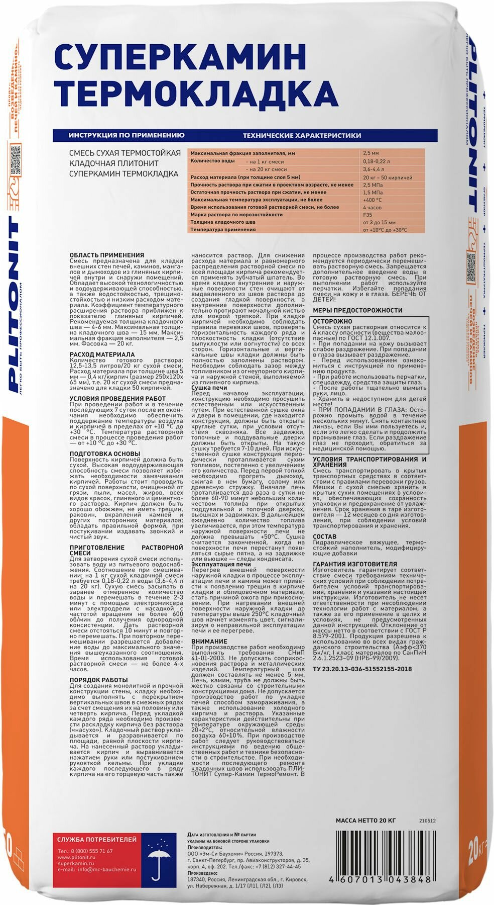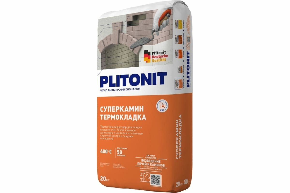 Смесь Plitonit Суперкамин Термокладка Термораствор для Кладки Печей И Камин Внутр И НАР РАБ 20КГ (1) .