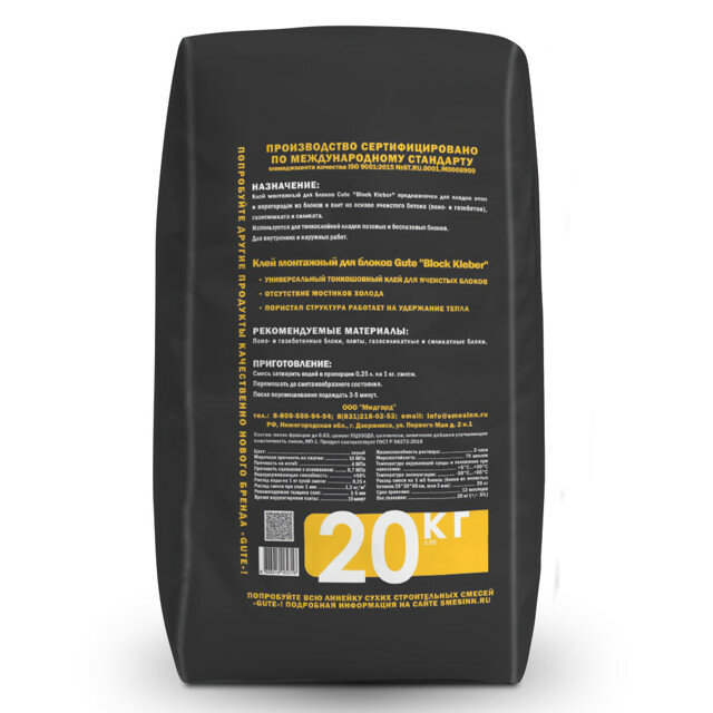 клей для блоков GUTE Block Klebber 20кг, арт.М150/12 интересное: