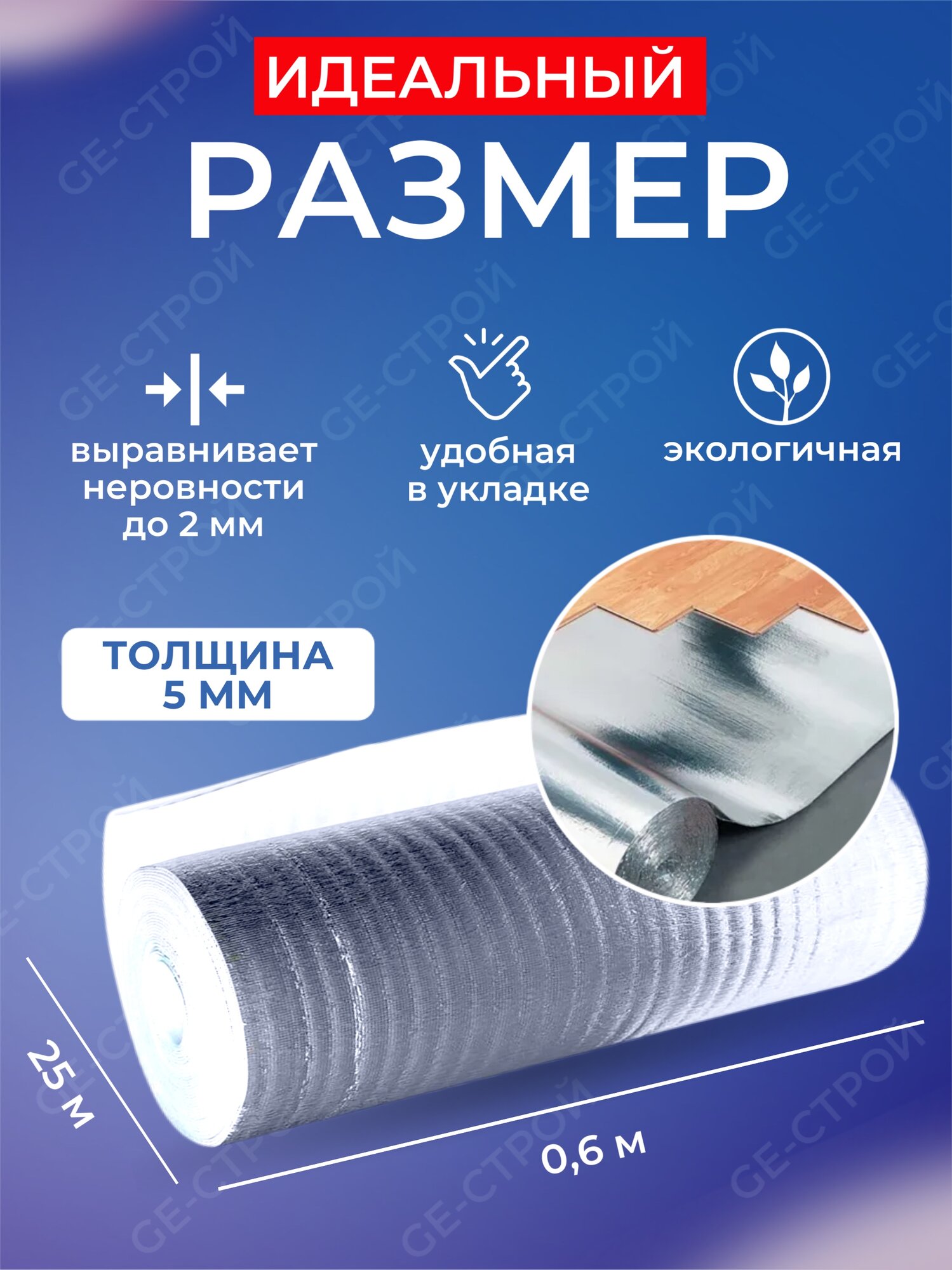 Подложка фольгированная самоклеющаяся 5мм 0,6м х 25м (15м2)