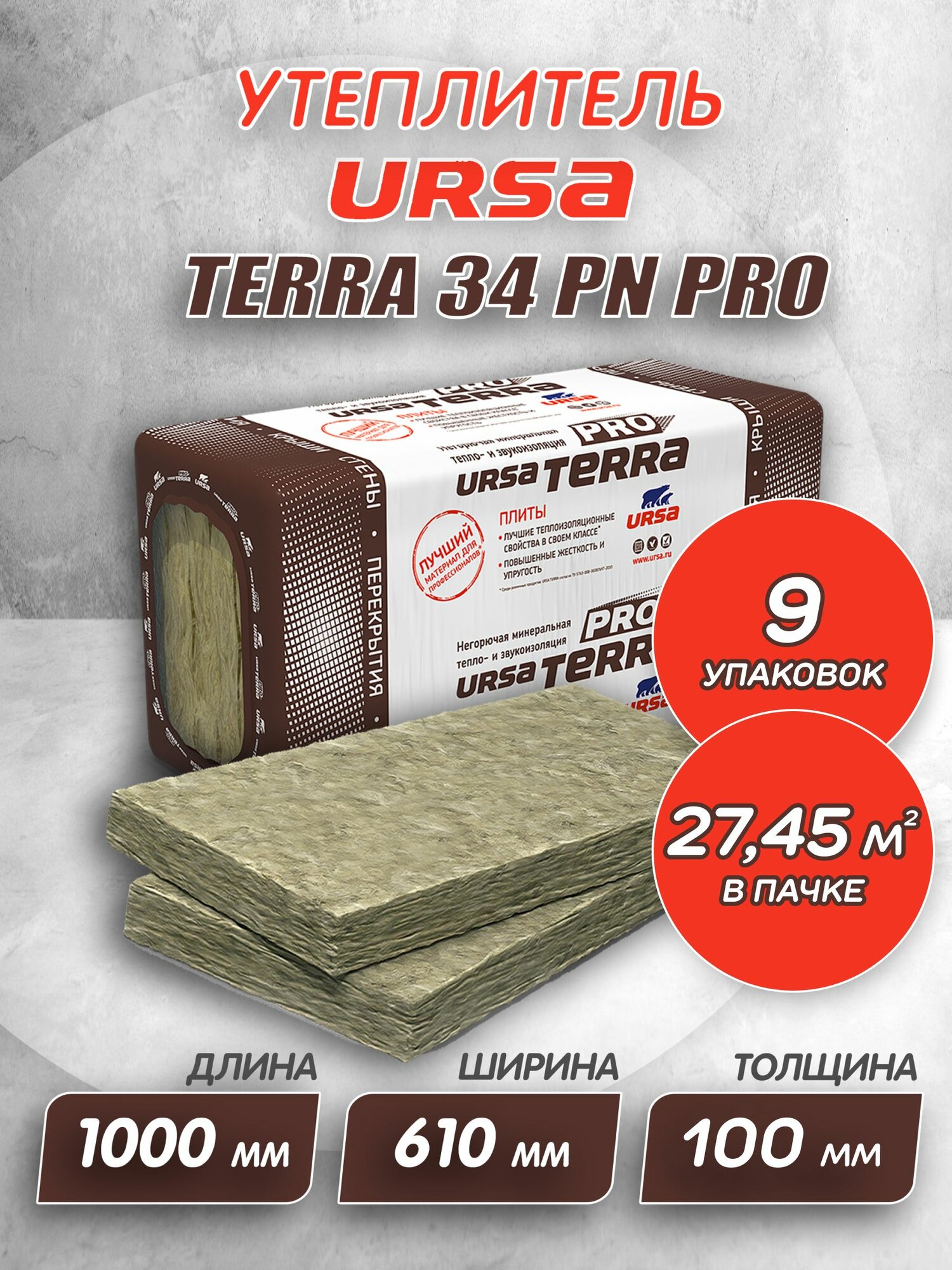 Утеплитель для стен и крыши URSA TERRA 34 PN PRO 100 мм 9 шт 27.45 м2 интересное: