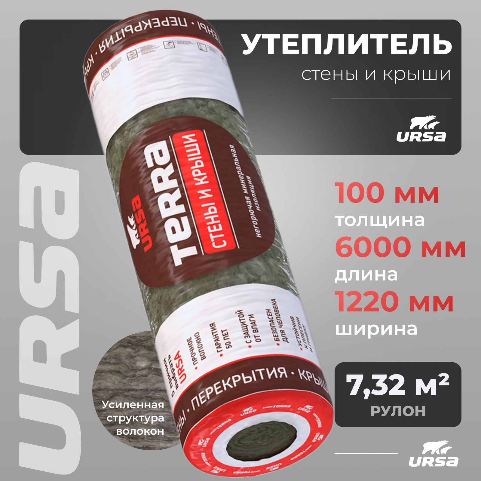 Утеплитель рулонный URSA Terra Стены и крыши (6000/1220/100мм, 1 мат, 7.32м2) для утепления мансард, стен, скатных крыш интересное: