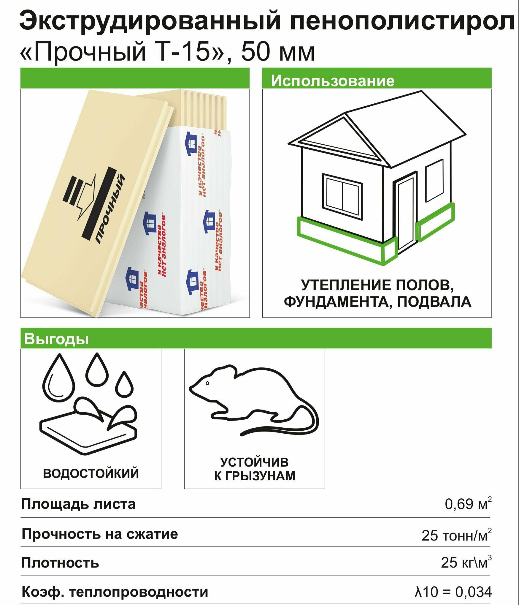 Экструдированный пенополистирол 50 мм Прочный Т-15 585х1185 мм 0.69 м (1 лист) интересное: