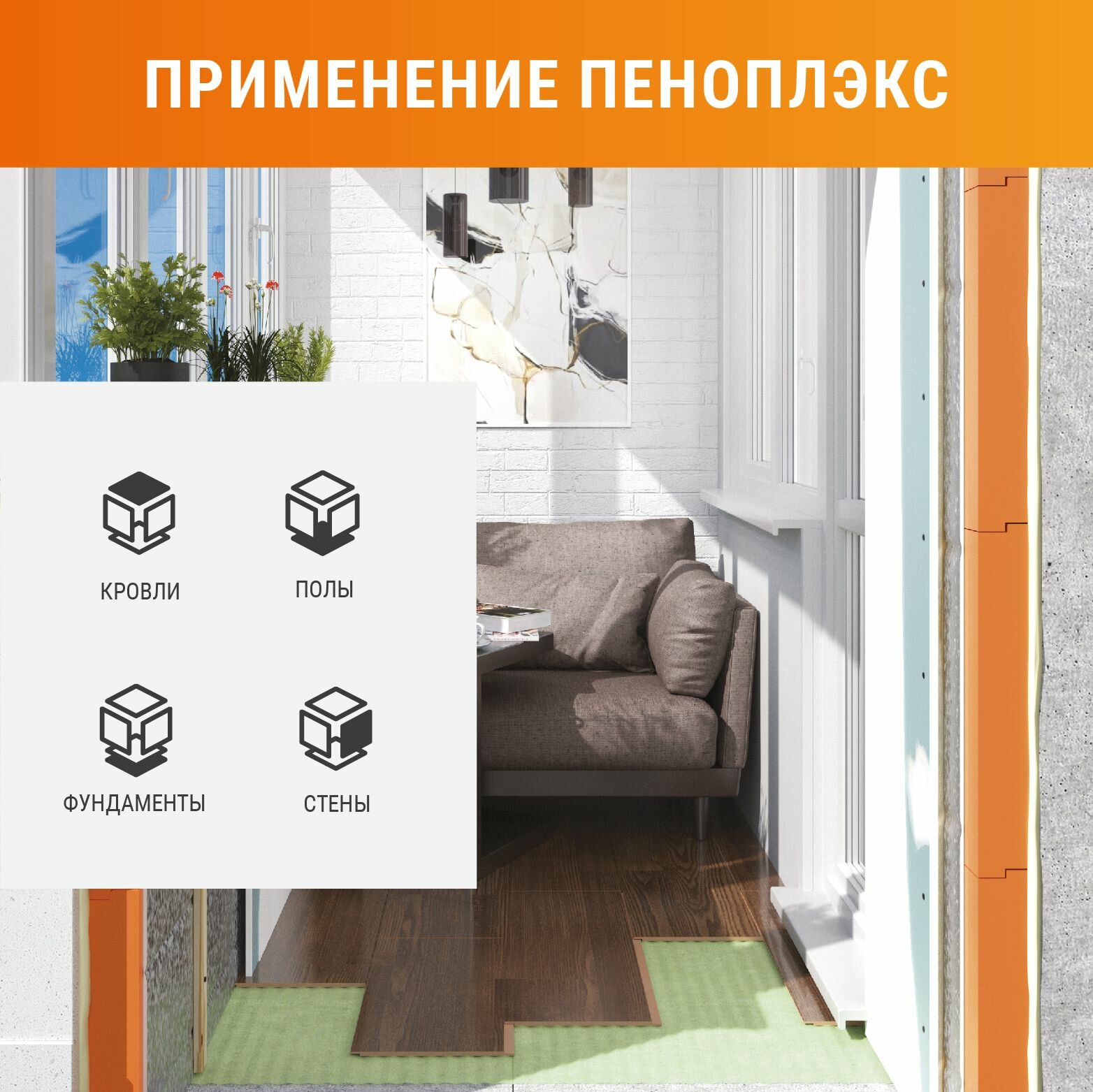 Пеноплэкс Комфорт 20 мм (80 плит/4 упаковки/55.44 м2), утеплитель для стен, крыши, пола, экструзионный пенополистирол