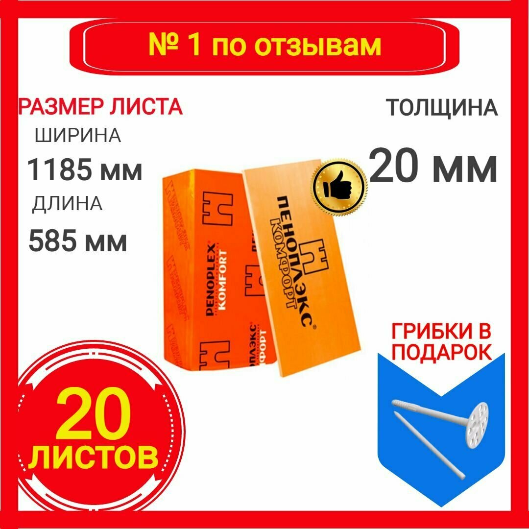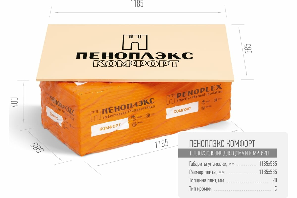 Пеноплэкс Комфорт XPS Г4 1185х585х20мм (шт.) / Пеноплэкс Комфорт экструдированный пенополистирол Г4 1185х585х20мм (шт.)